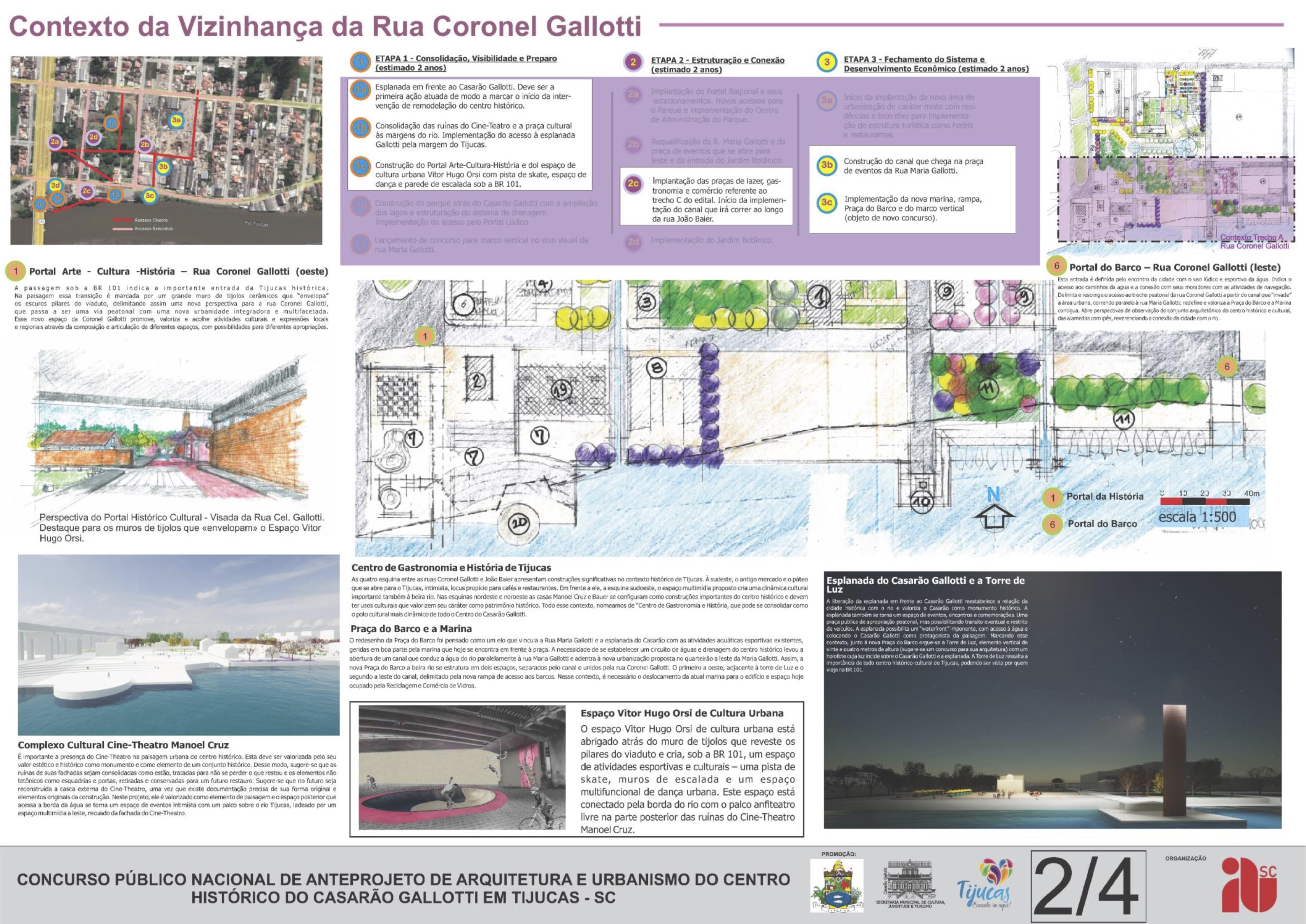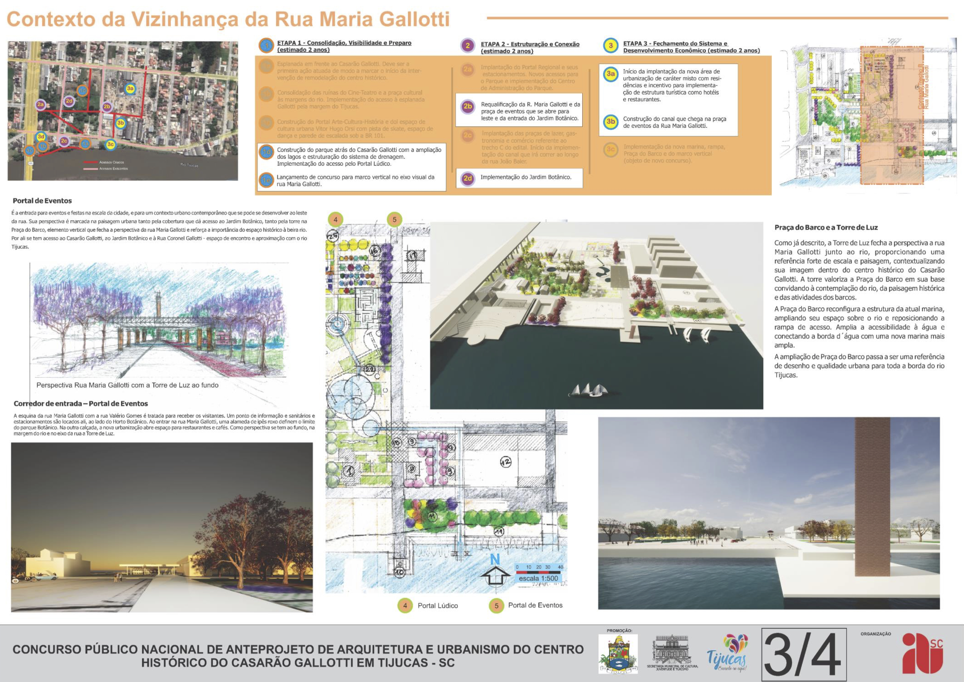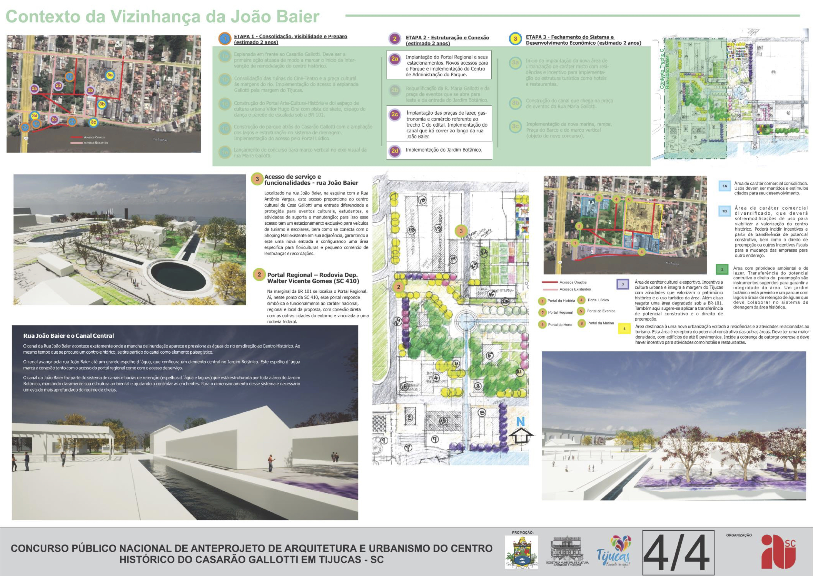 Menção Honrosa – ProGeta – Projetos e Gestão Ambiental – Equipe: Luiz Antônio Medeiros da Silva (arquiteto e urbanista) Antônio Guarda (geógrafo) Carolina Silva e Lima Schleder (arquiteta e urbanista) Luciano Torres Tricárico (arquiteto e urbanista) Renata Schramm Corrêa (arquiteta e urbanista) Consultor: Sergio Torres Moraes (arquiteto e urbanista) Assessoria Técnica: AIA AIA – Ateliê Integrado de Arquitetura – Florianópolis – SC.
