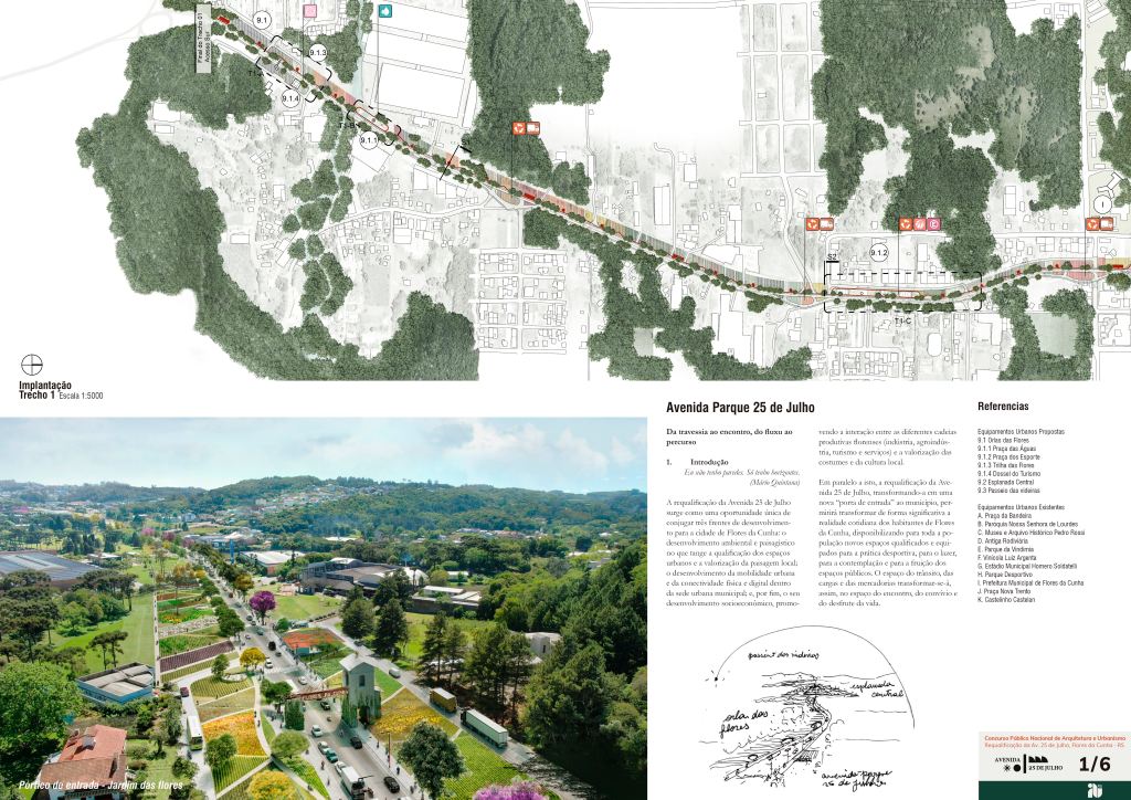 Veja a seguir os projetos premiados e menções do Concurso Público Nacional de Arquitetura e Urbanismo para a requalificação da Avenida 25 de Julho em Flores da Cunha, no Rio Grande do Sul. Acesse aqui a Ata de Julgamento.
