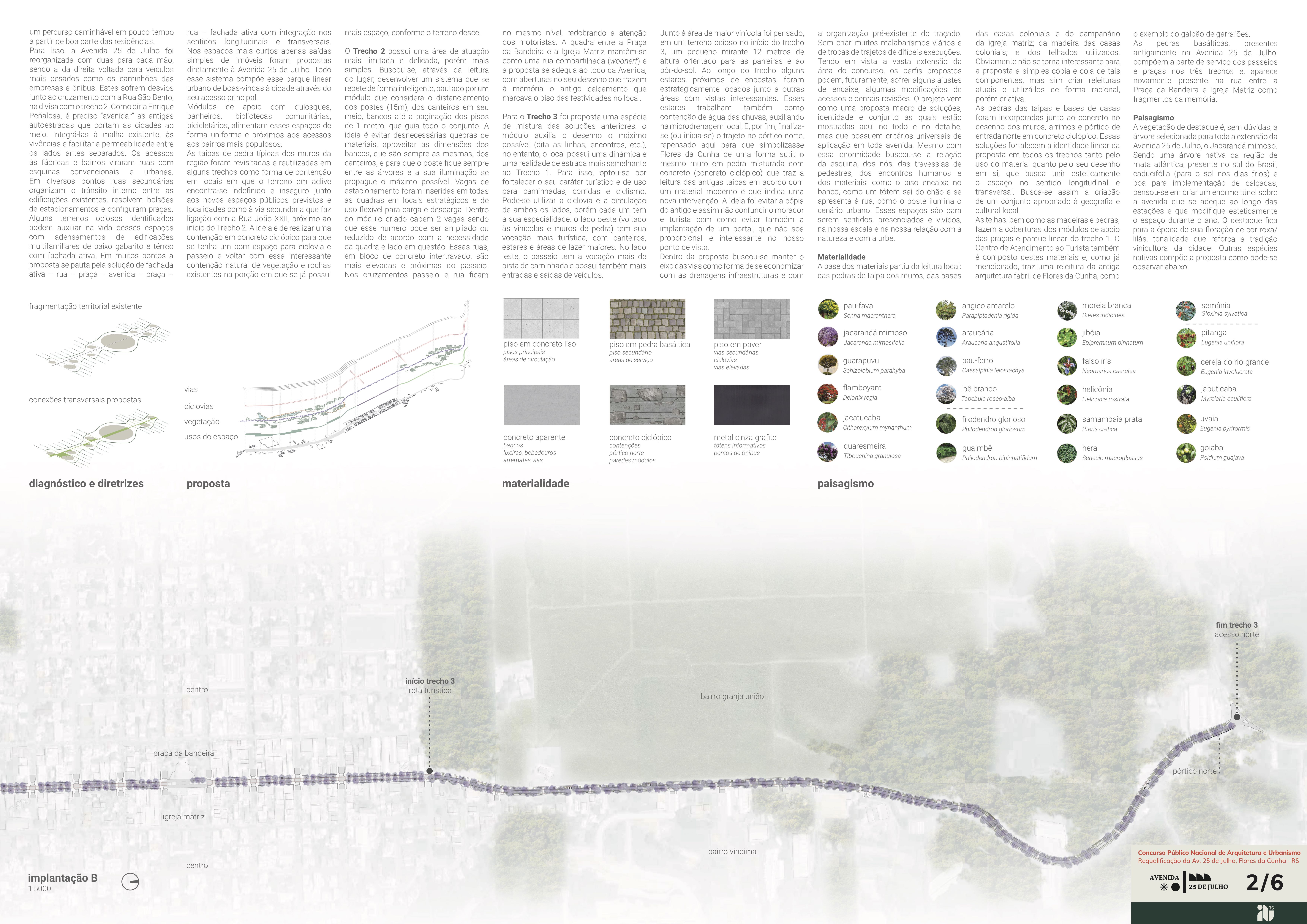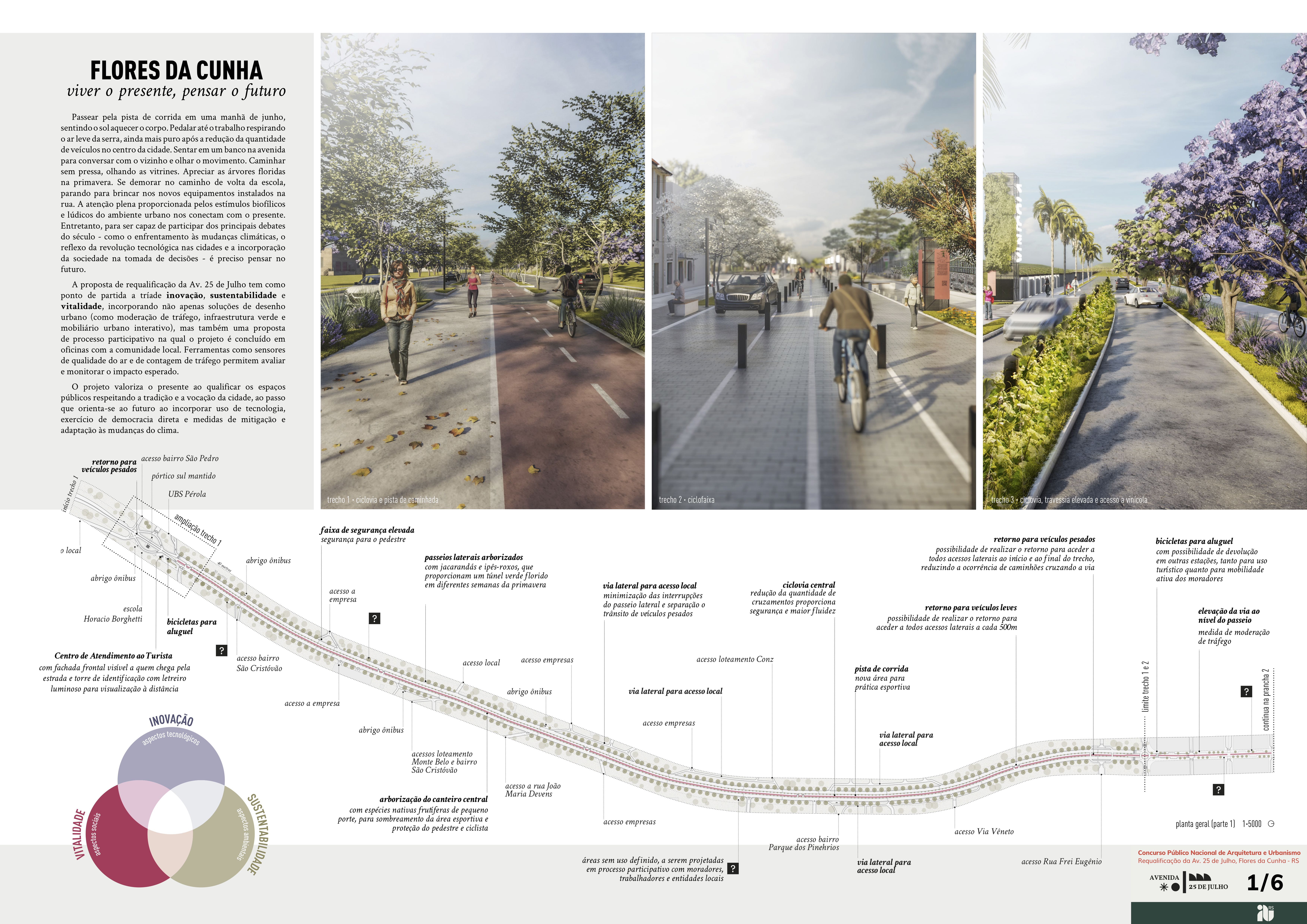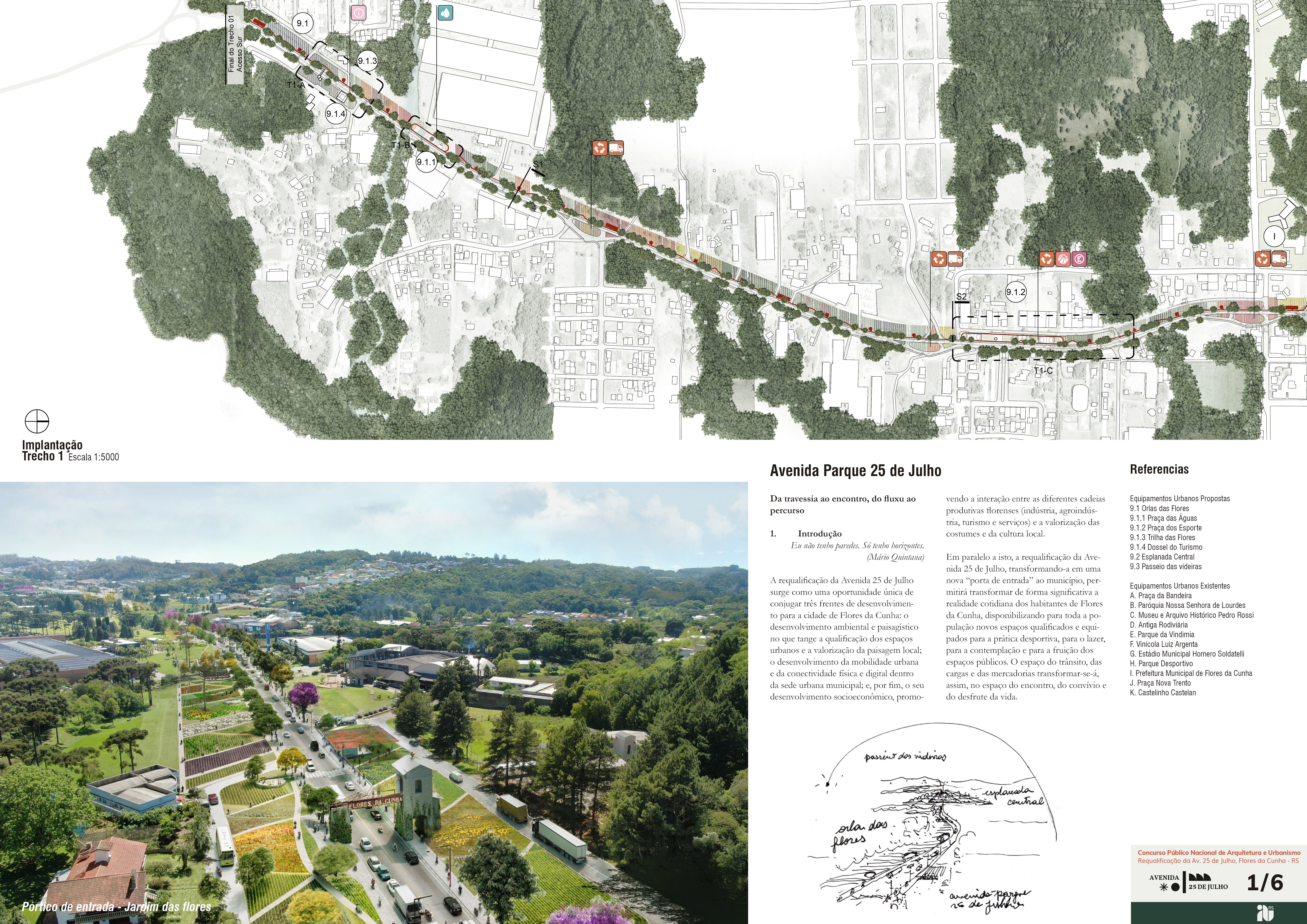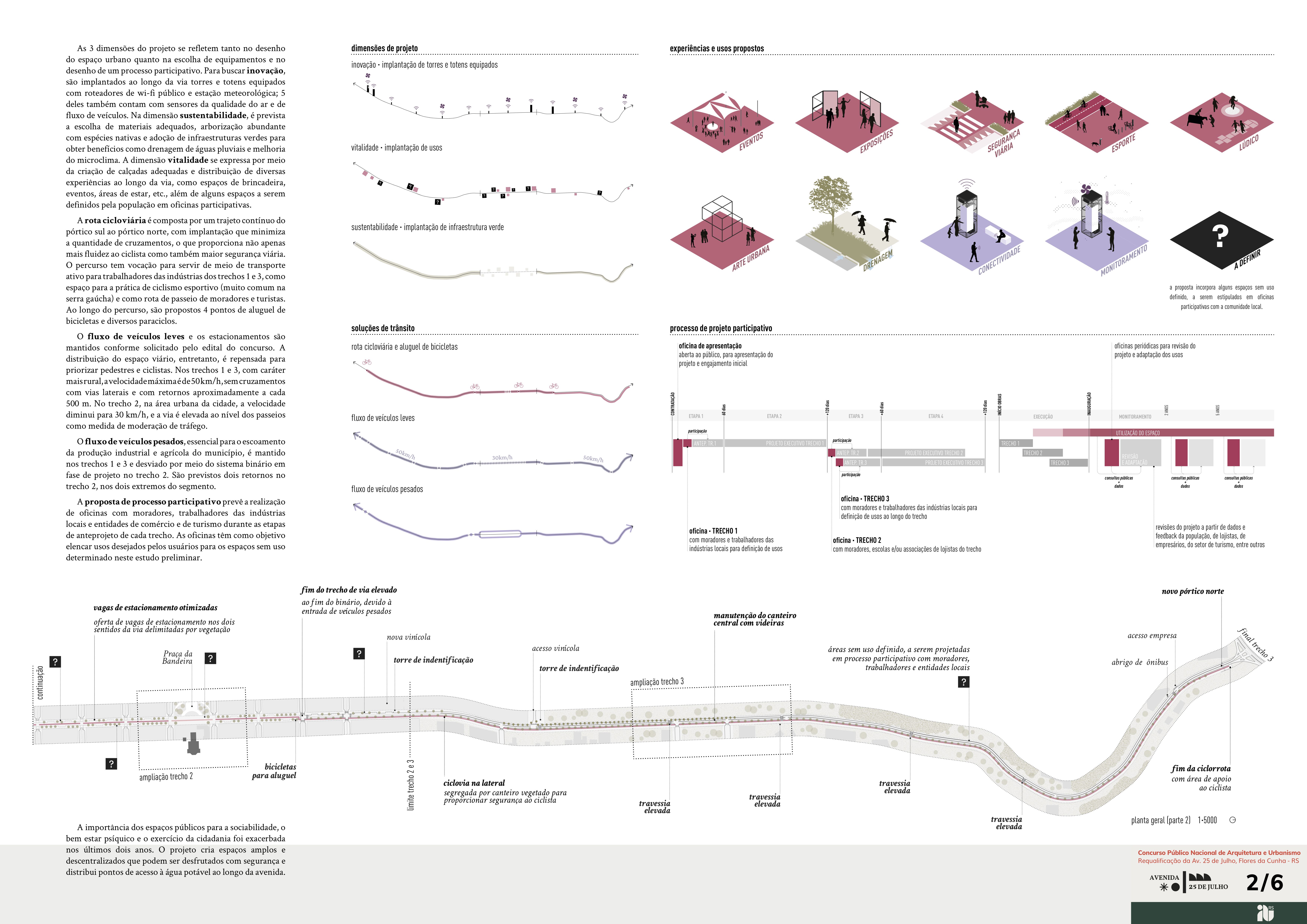 Veja a seguir os projetos premiados e menções do Concurso Público Nacional de Arquitetura e Urbanismo para a requalificação da Avenida 25 de Julho em Flores da Cunha, no Rio Grande do Sul. Acesse aqui a Ata de Julgamento.