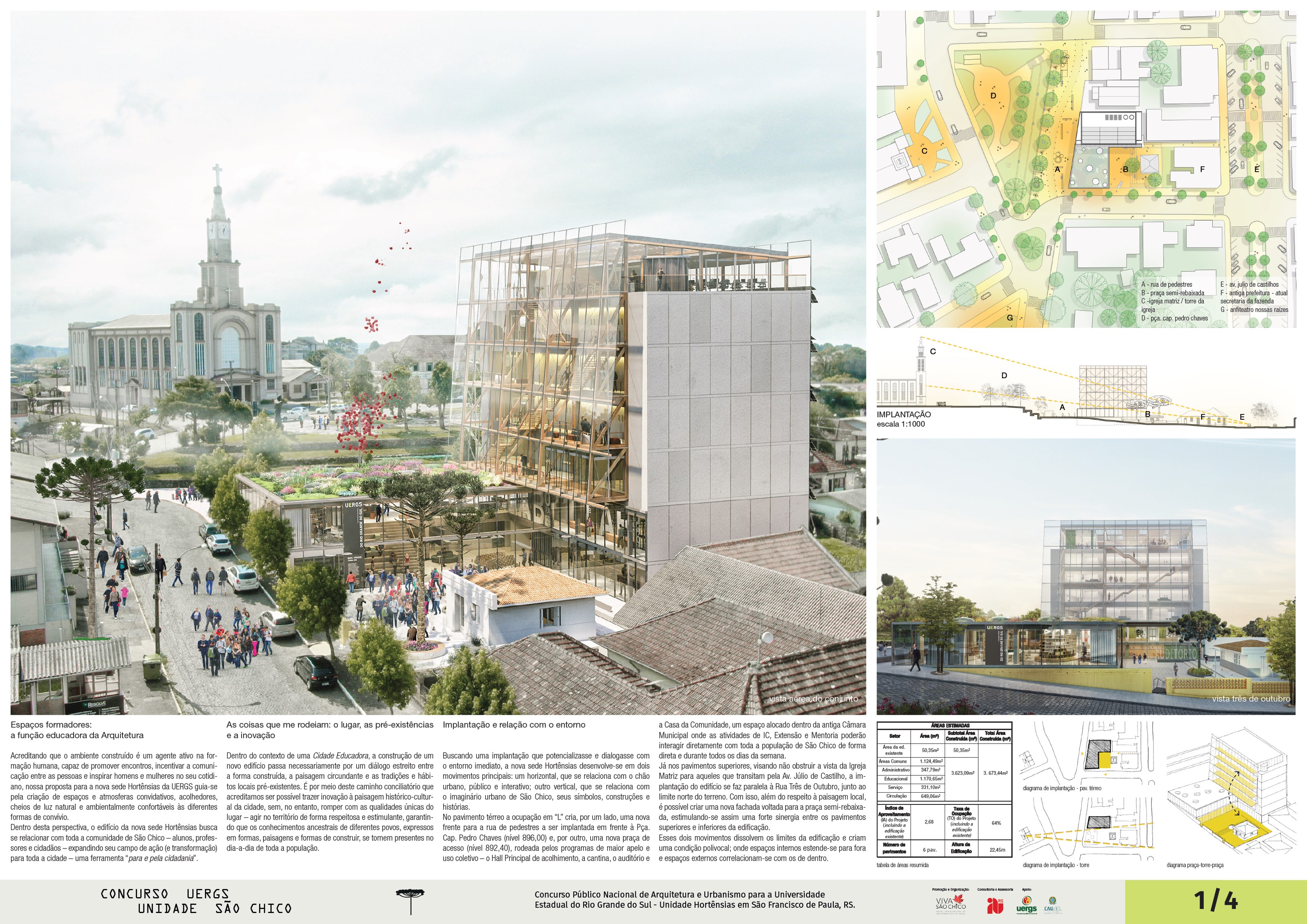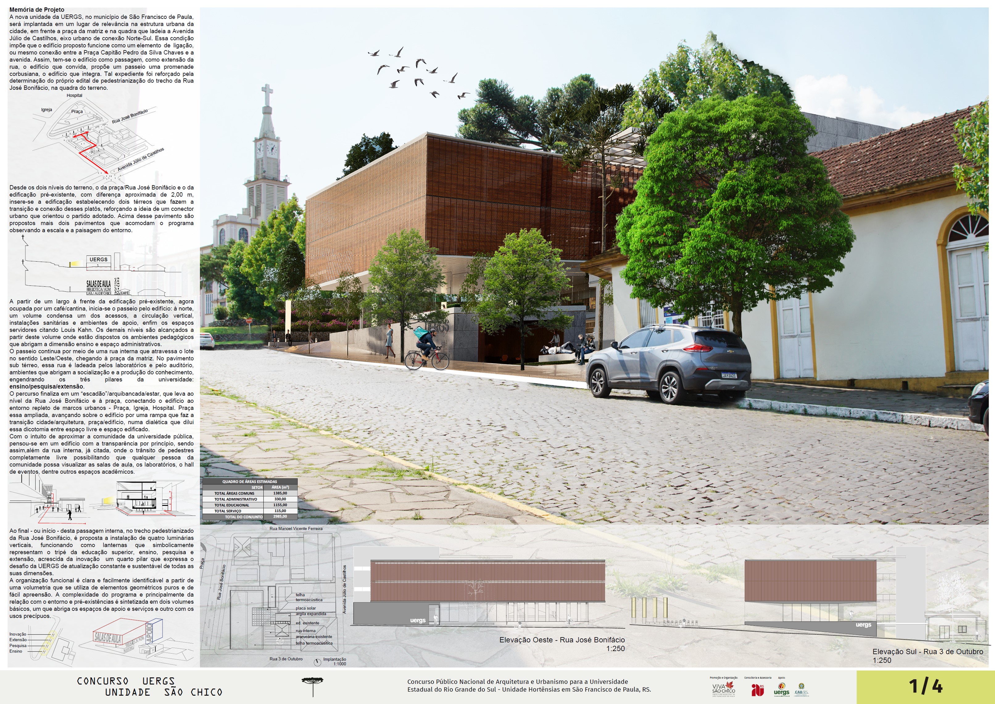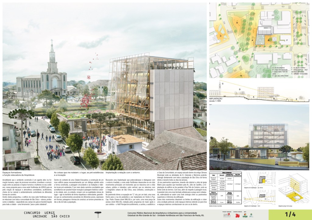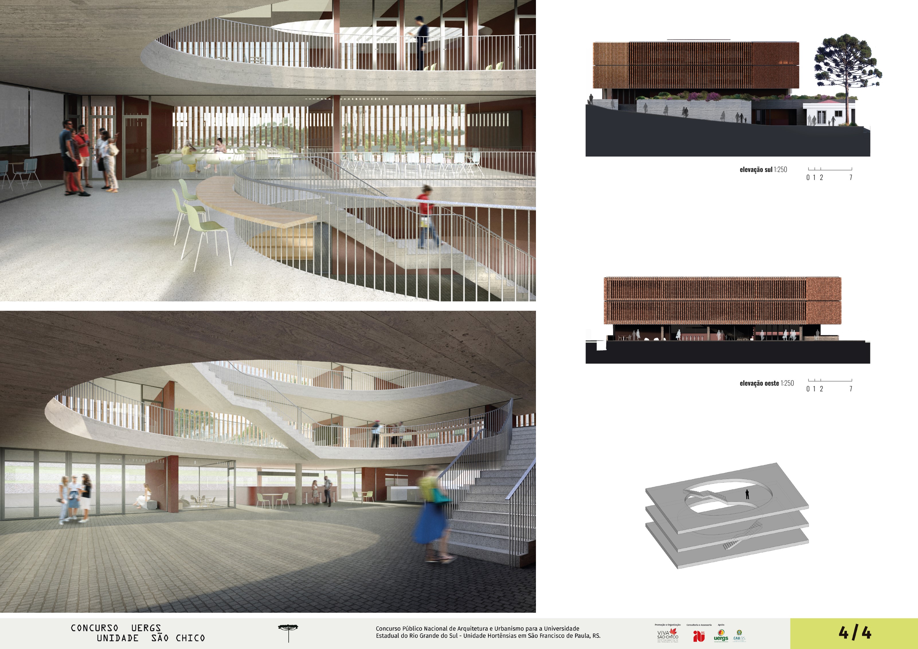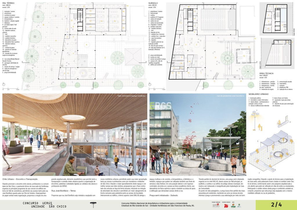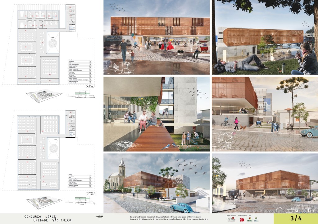 Veja a seguir os projetos premiados e menções do Concurso Público Nacional de Arquitetura e Urbanismo para a Universidade Estadual do Rio Grande do Sul (UERGS) – Unidade Hortênsias – São Chico. Veja aqui a Ata da Comissão Julgadora.