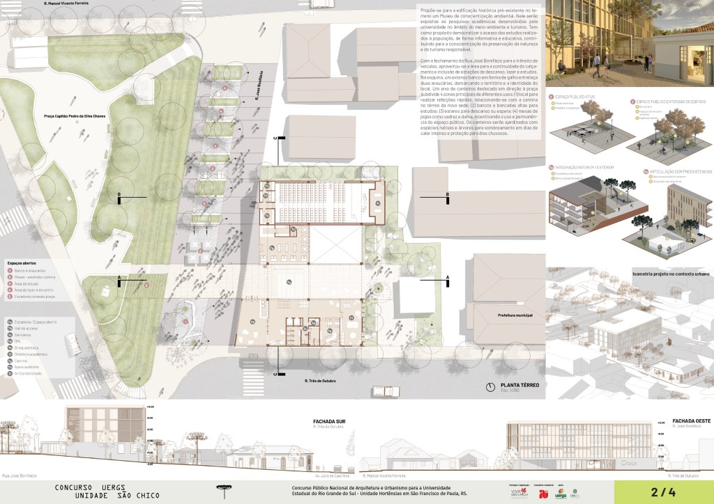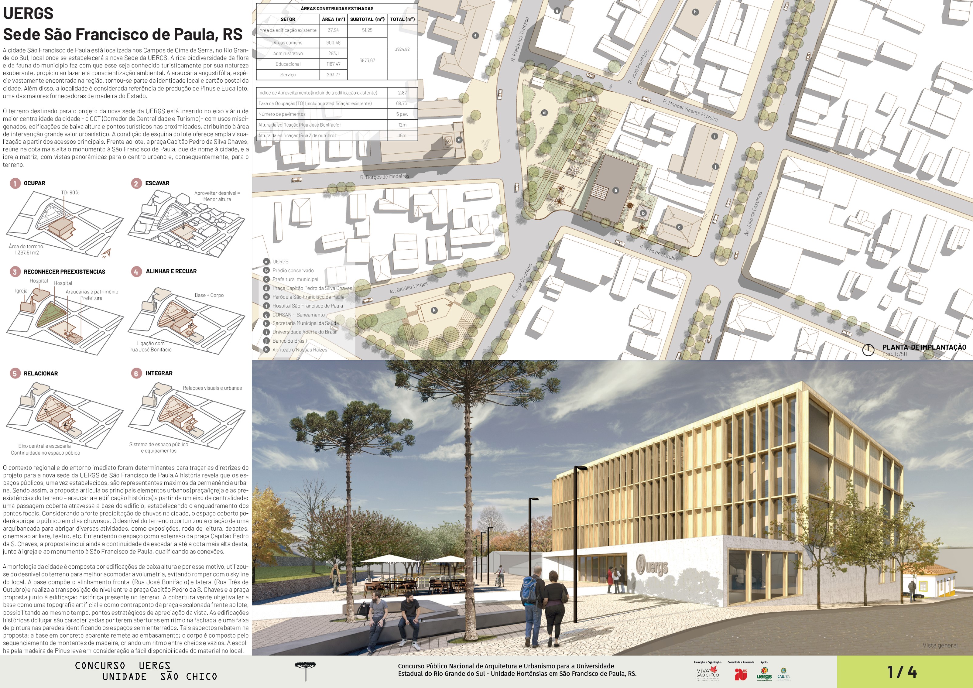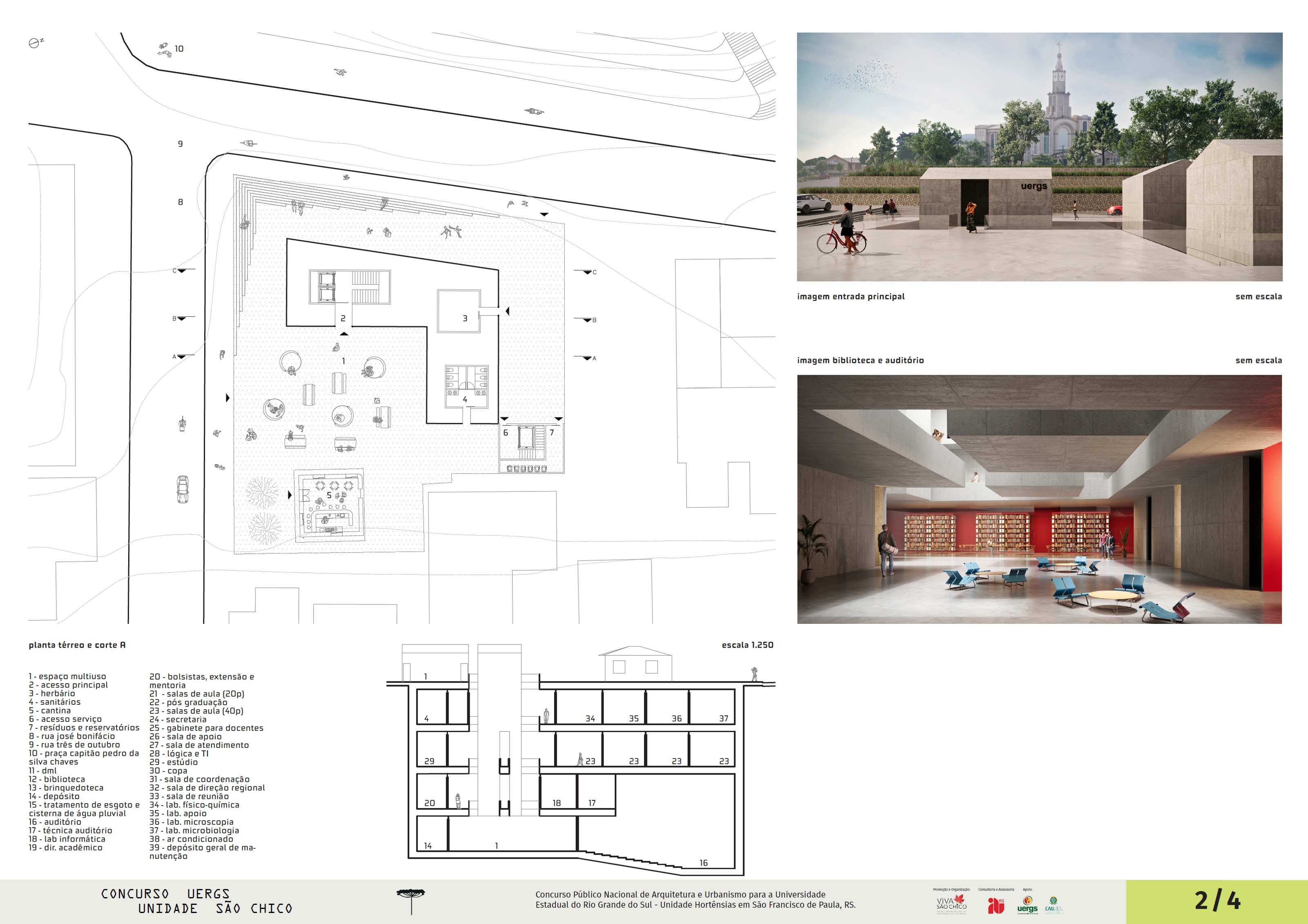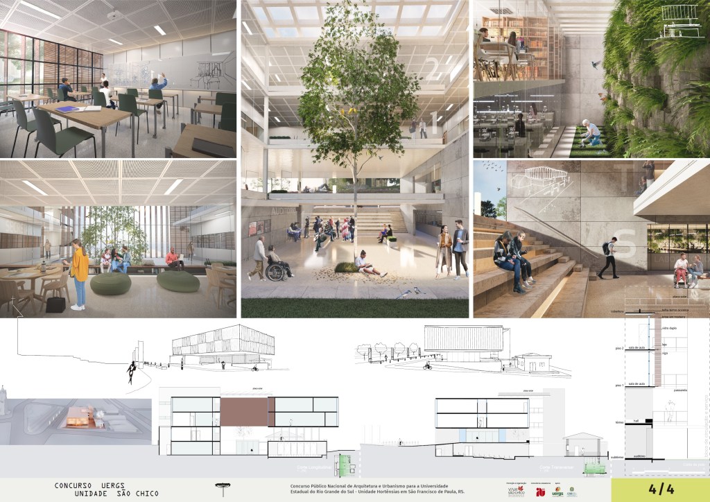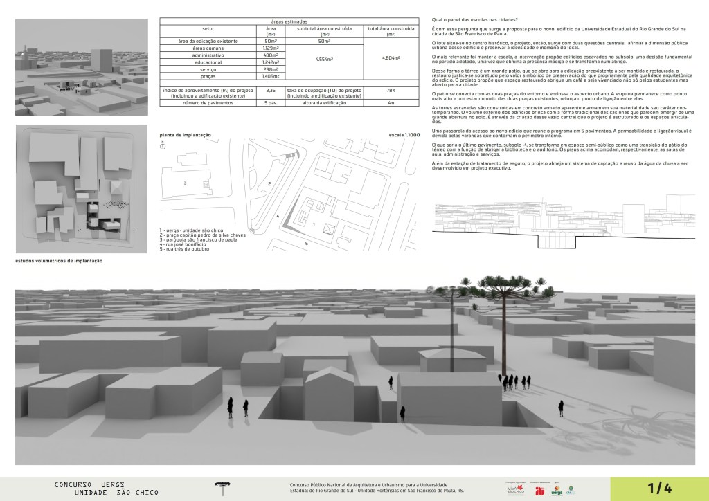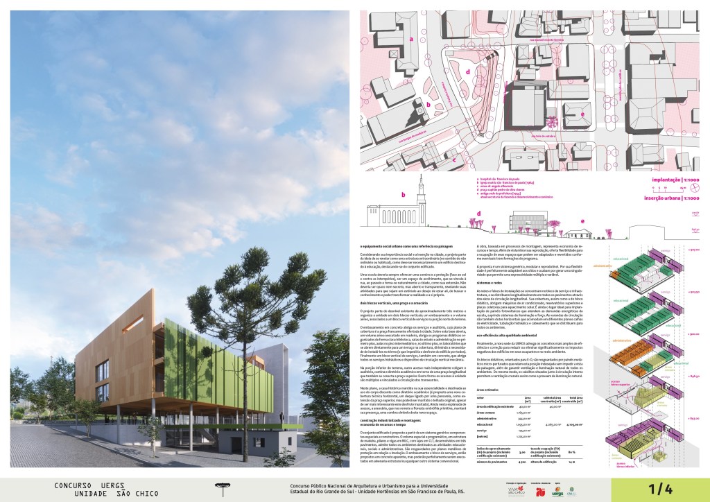 Veja a seguir os projetos premiados e menções do Concurso Público Nacional de Arquitetura e Urbanismo para a Universidade Estadual do Rio Grande do Sul (UERGS) – Unidade Hortênsias – São Chico. Veja aqui a Ata da Comissão Julgadora.