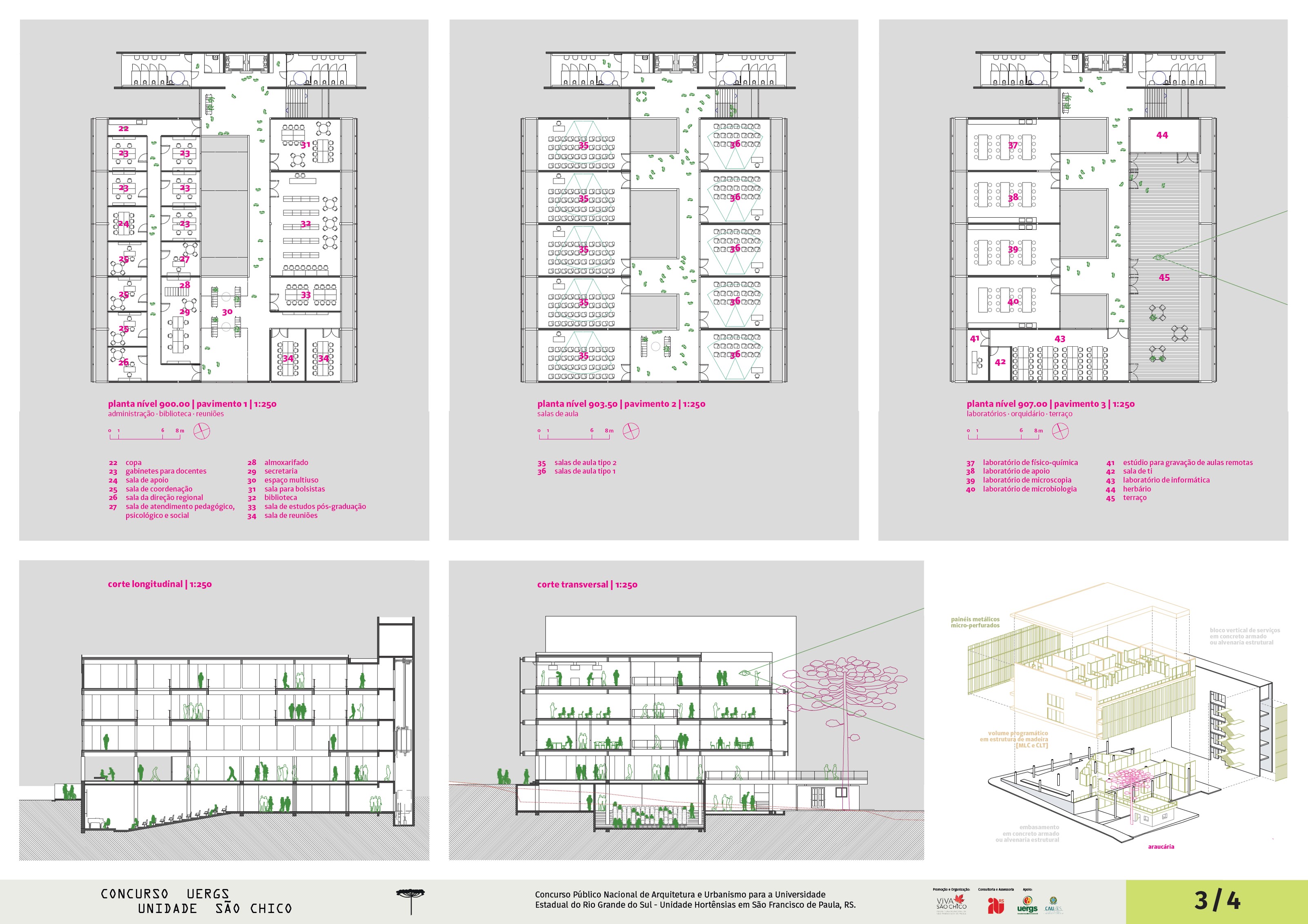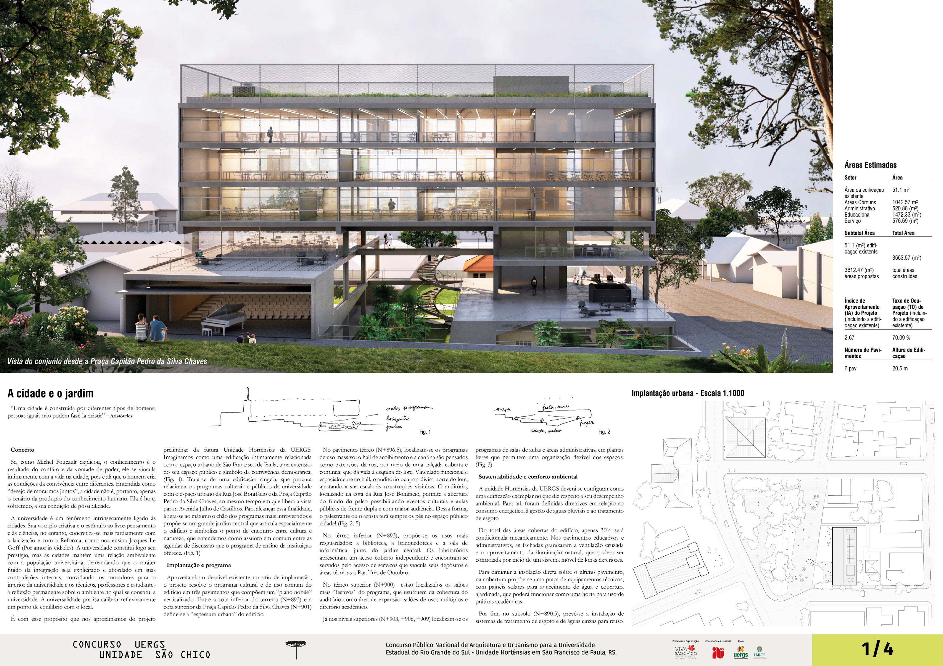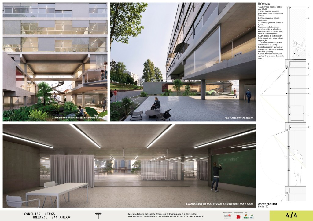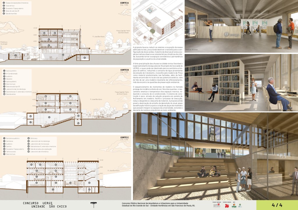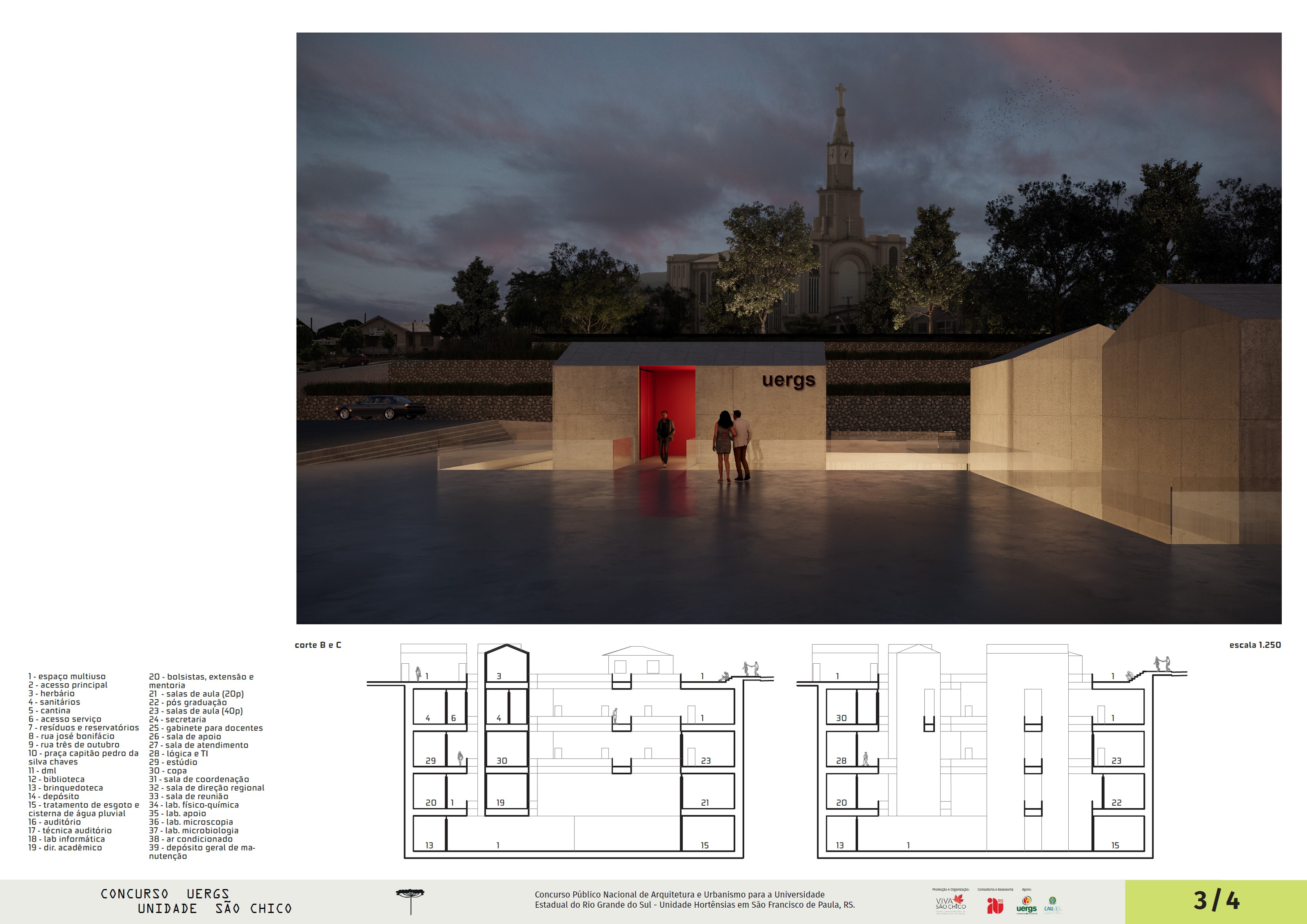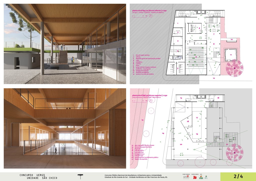 Veja a seguir os projetos premiados e menções do Concurso Público Nacional de Arquitetura e Urbanismo para a Universidade Estadual do Rio Grande do Sul (UERGS) – Unidade Hortênsias – São Chico. Veja aqui a Ata da Comissão Julgadora.