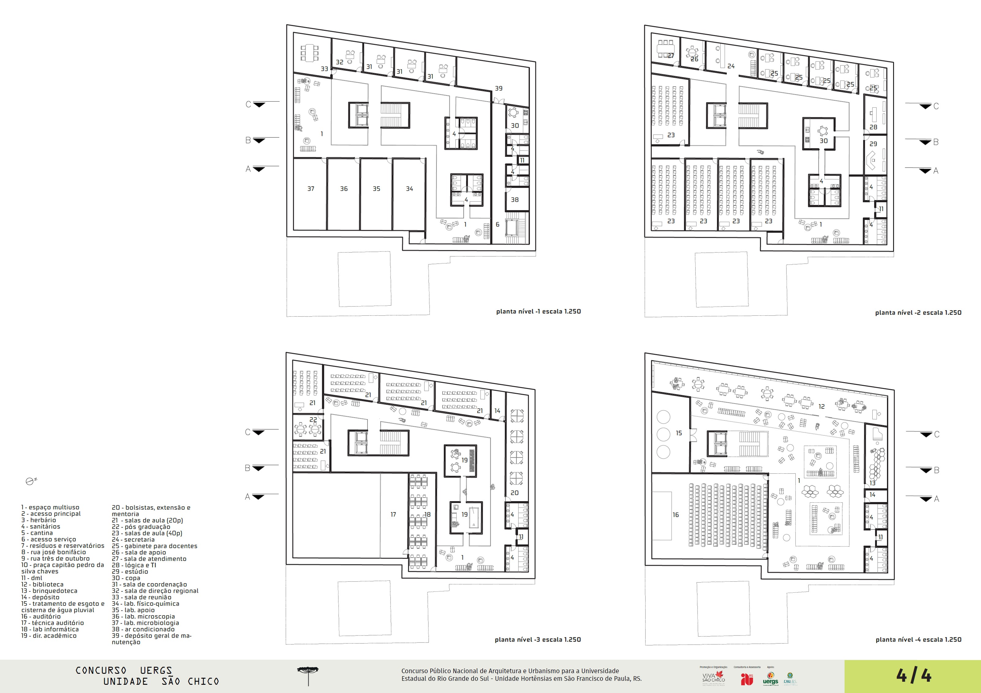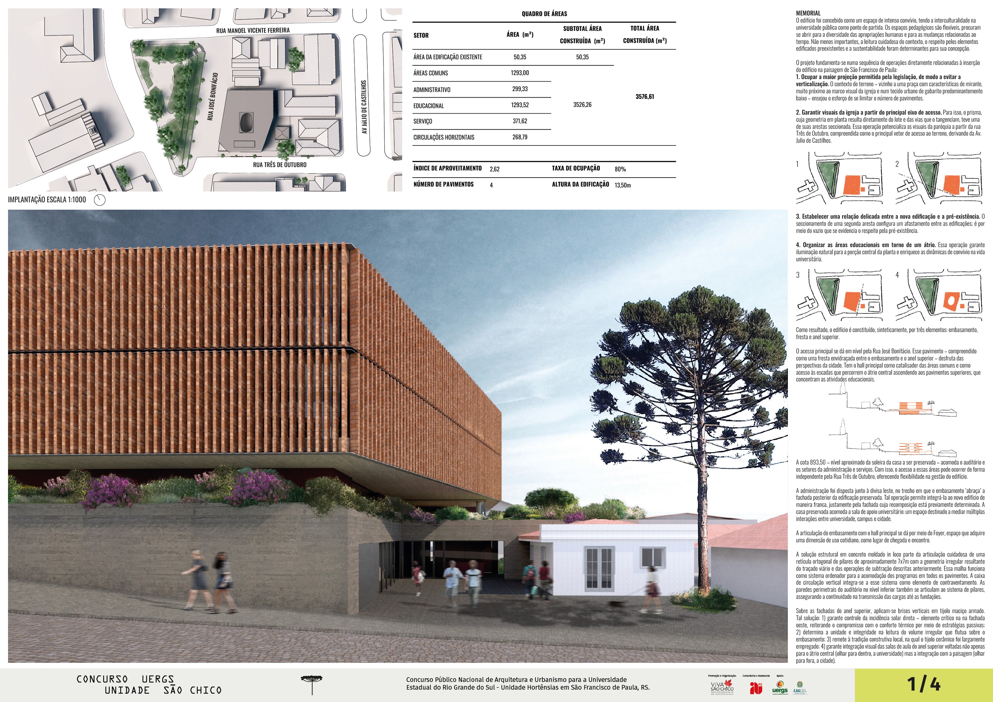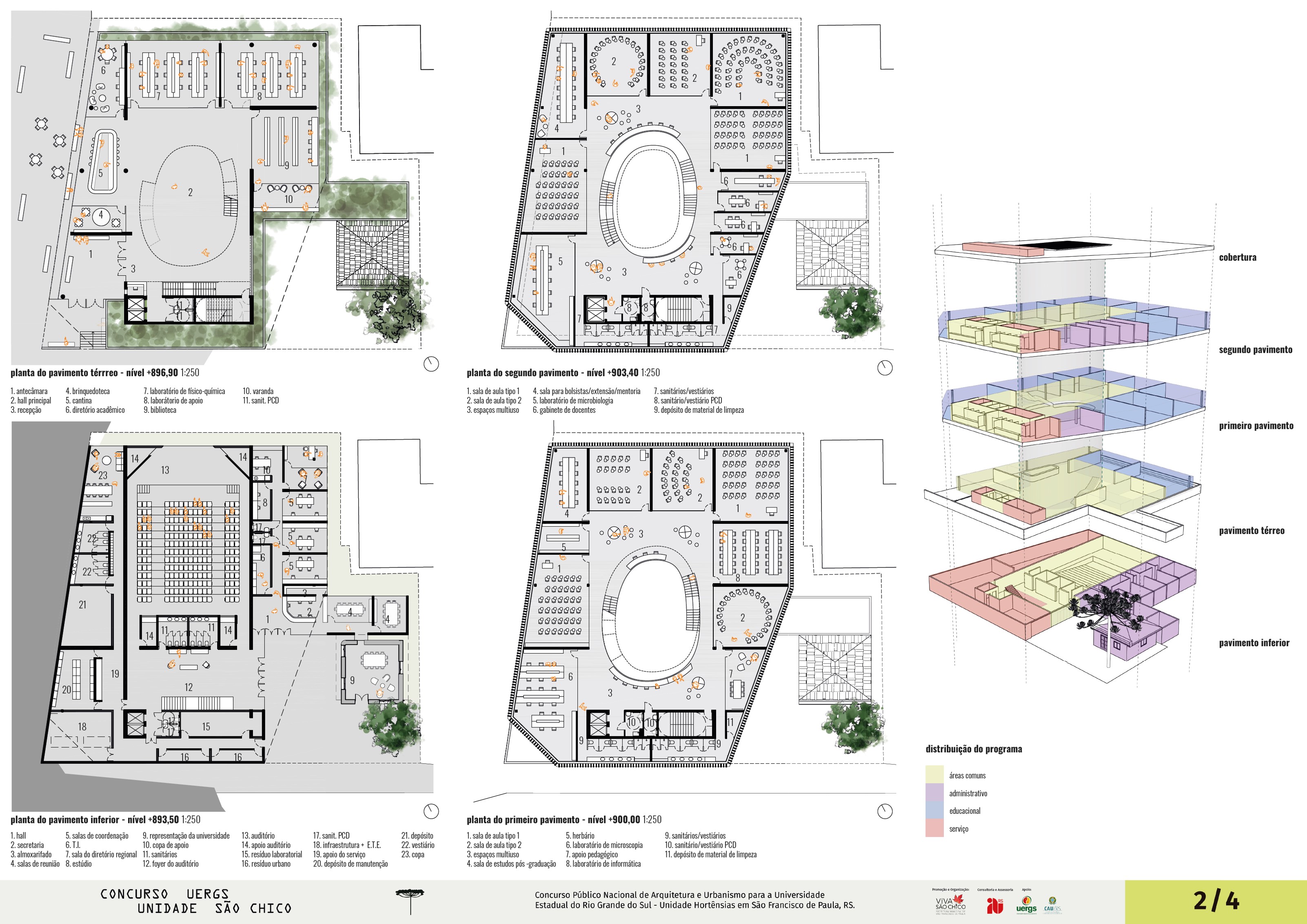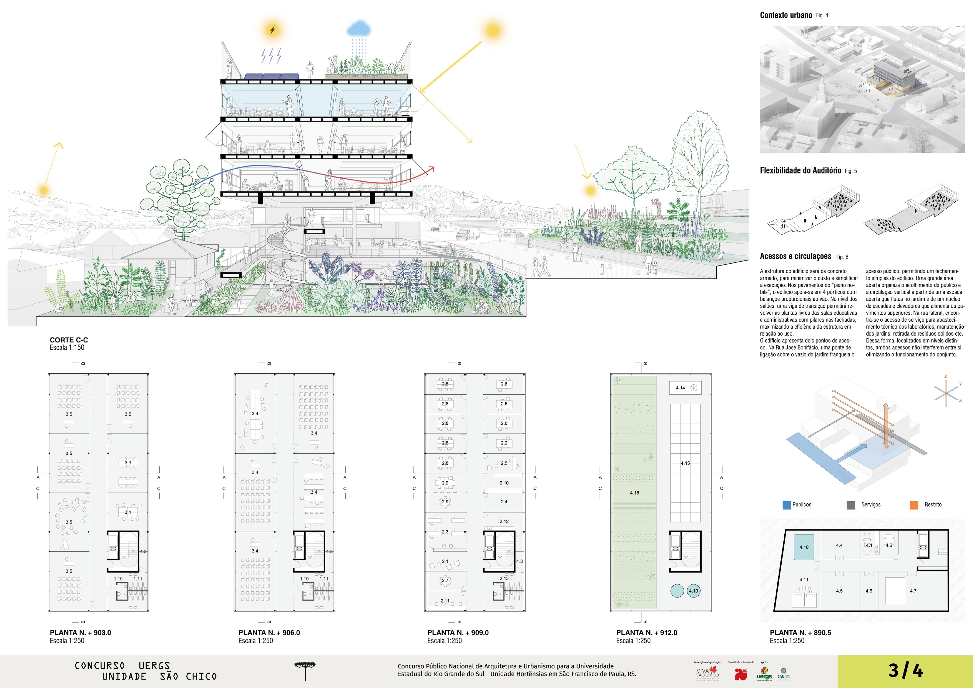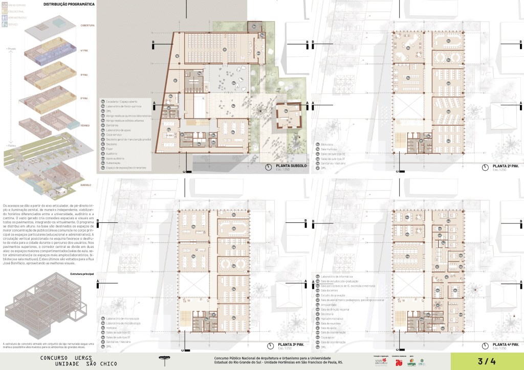 Veja a seguir os projetos premiados e menções do Concurso Público Nacional de Arquitetura e Urbanismo para a Universidade Estadual do Rio Grande do Sul (UERGS) – Unidade Hortênsias – São Chico. Veja aqui a Ata da Comissão Julgadora.