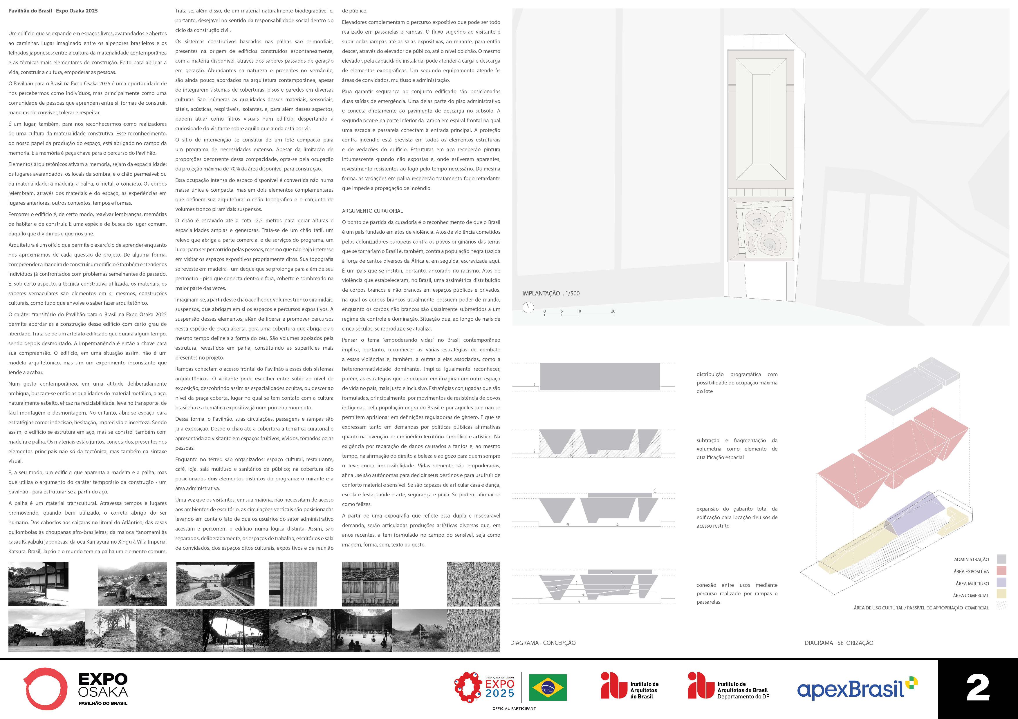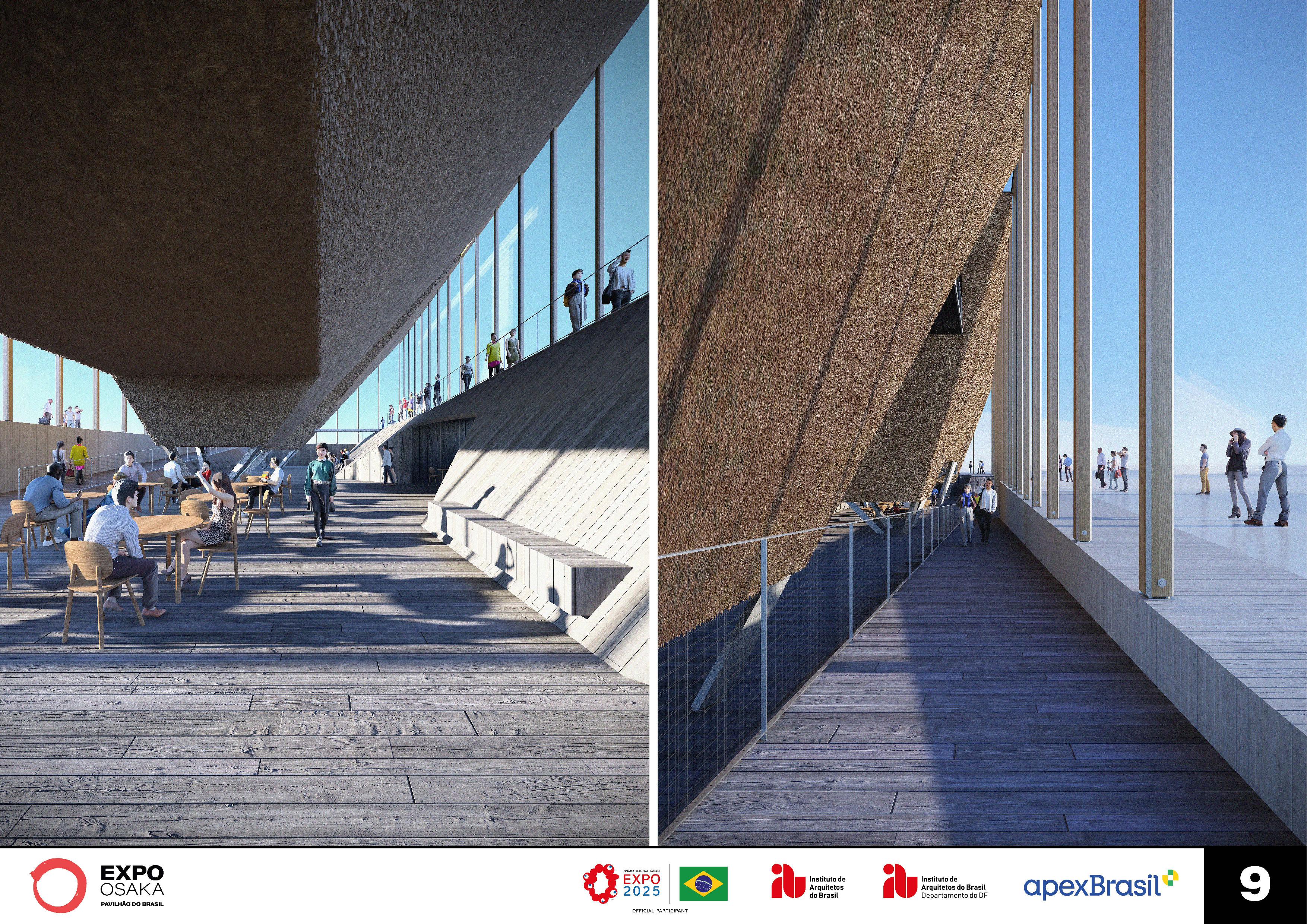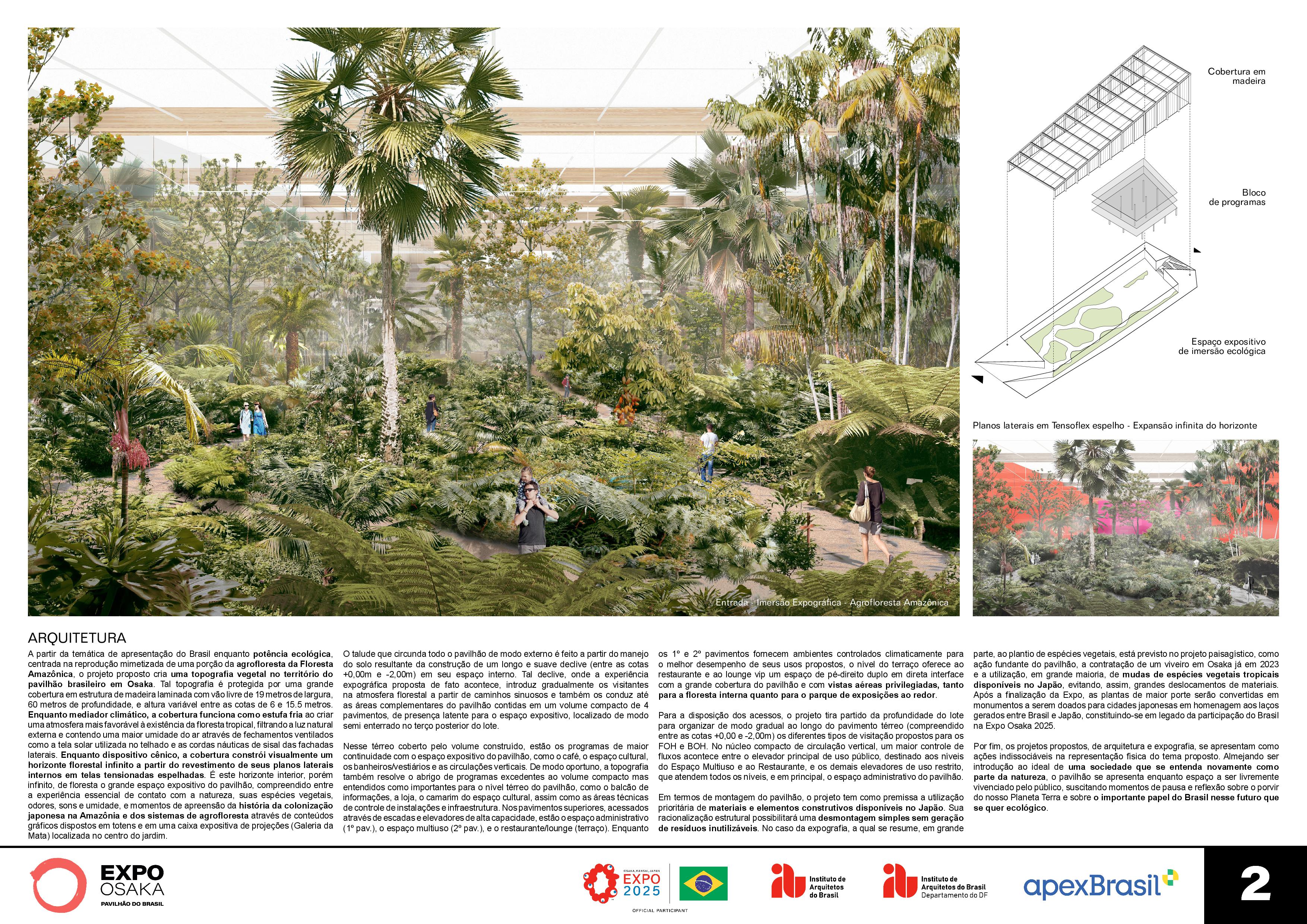 Segundo Lugar – BERNARDES; AGENCIA TPBA – Rio de Janeiro/RJ – Autores: Thiago Bernardes; Francisco Abreu; Thiago de Almeida; Priscila Bellas. Equipe: Curadoria: Kykah Bernardes. Consultoria em Paisagismo: Rodrigo Oliveira, Rodrigo Oliveira e Mariana. Rewood: Consultoria em estrutura; Eng. Carlito Calil Neto; 27+1 Comunicação visual: Consultoria em Expografia; Diretor de Arte Batman Zavareze.