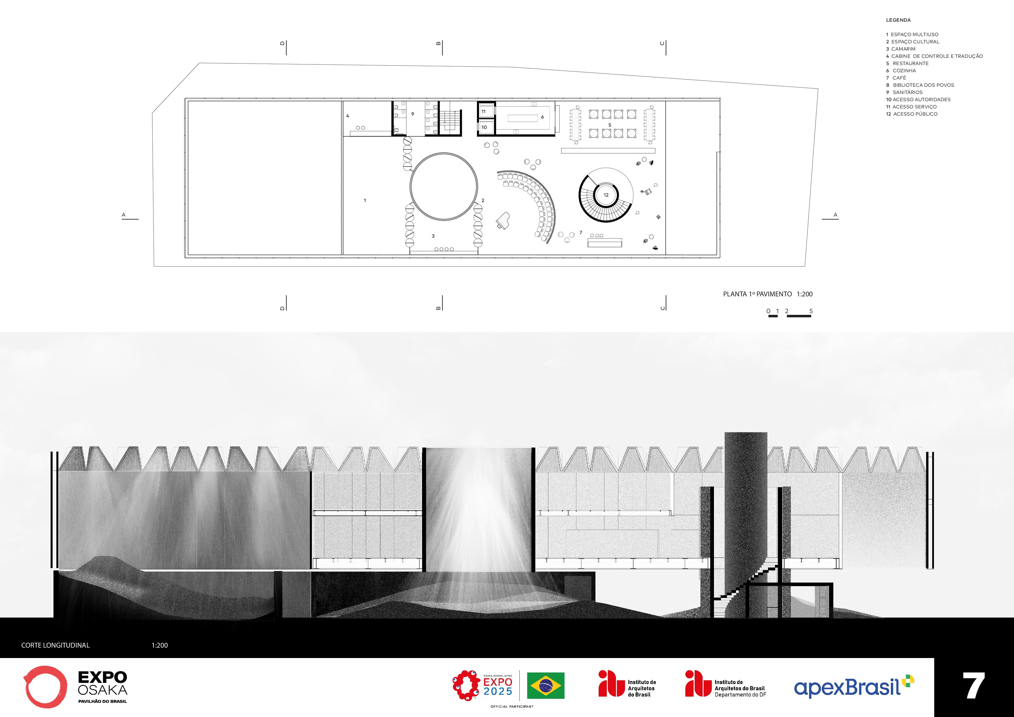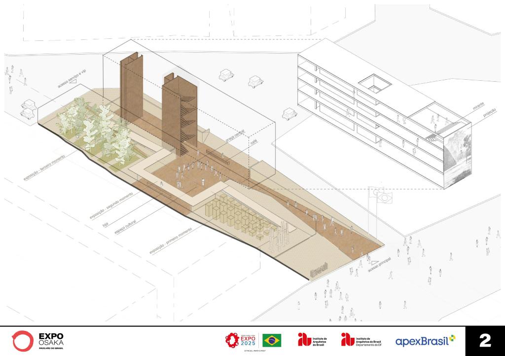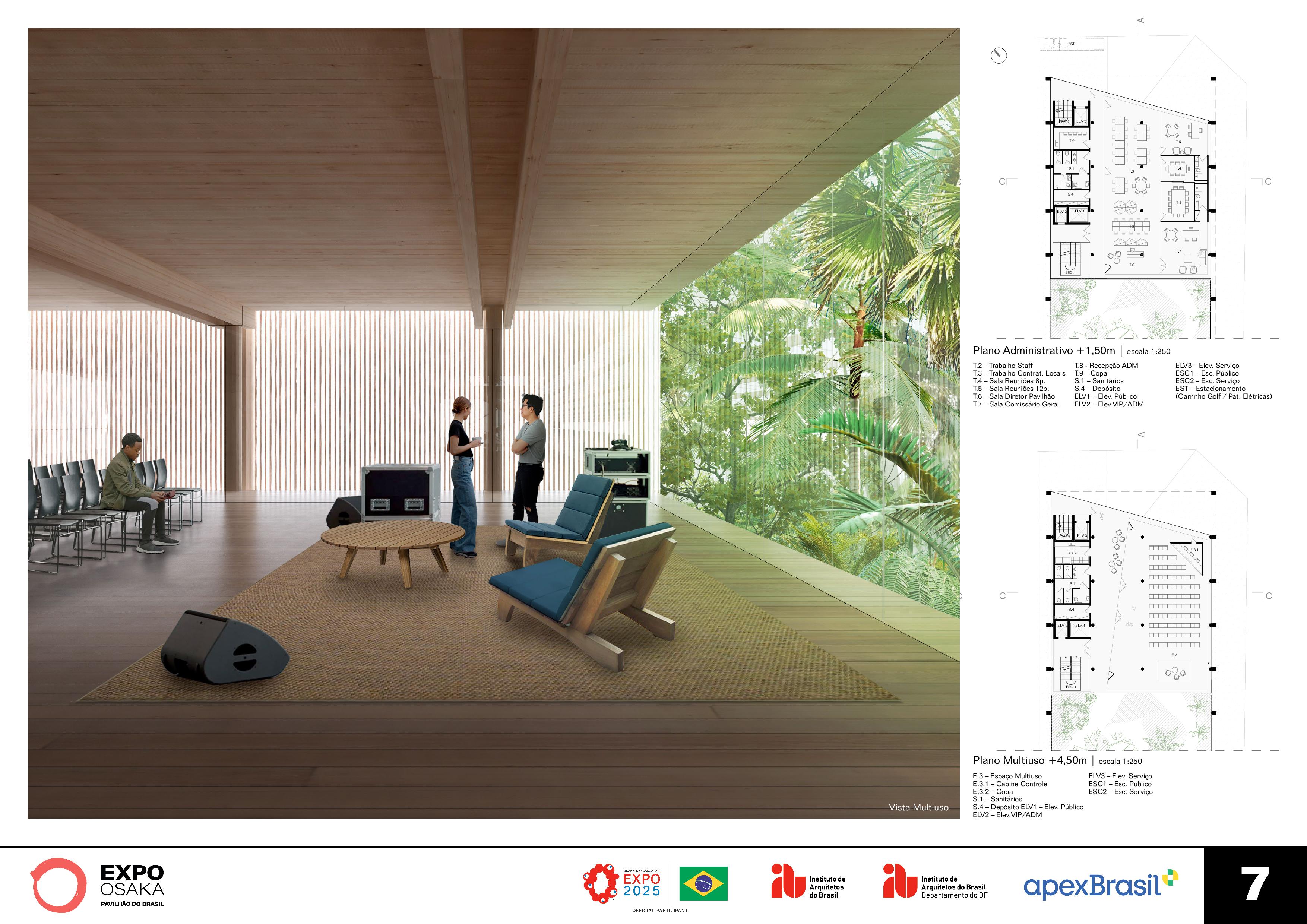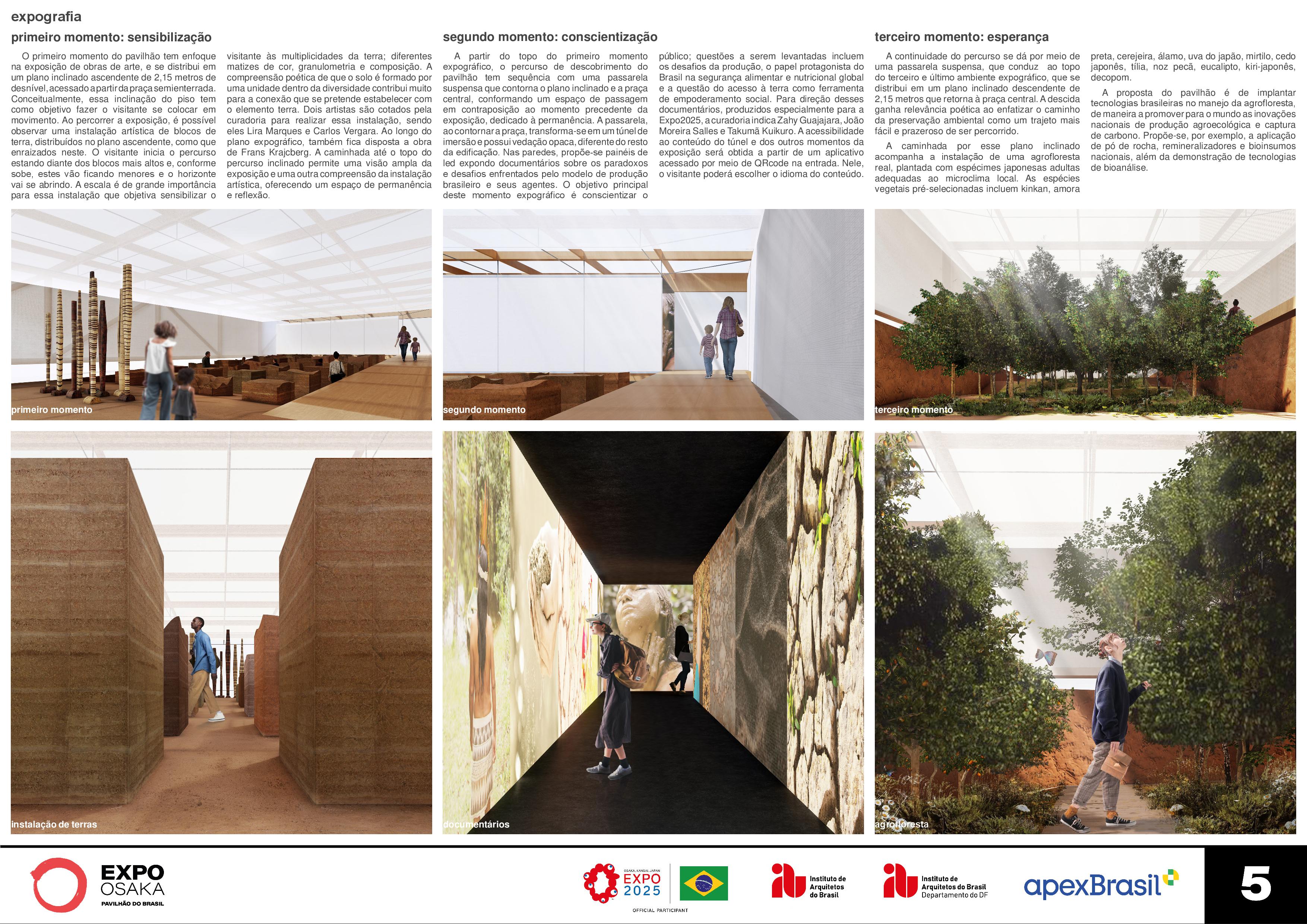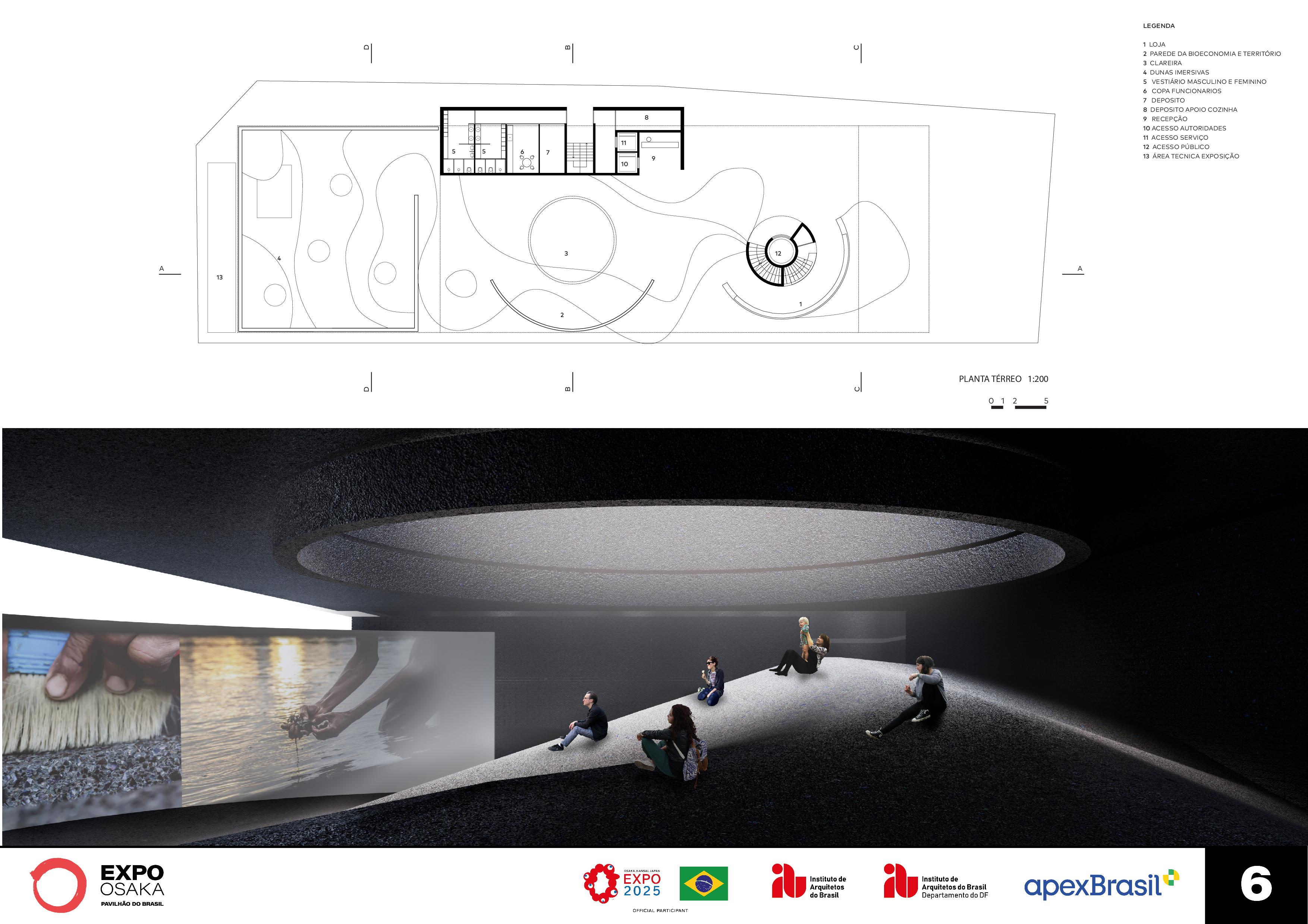Menção Honrosa – ARQBR Arquitetura e Urbanismo; HOUR Design – Brasília/DF – Autores: Eder Alencar e André Velloso. Equipe: Ken Hirose, Danielle Gressller, Victor Itonaga, Leonardo Carrilho, Júlia Huff, Talita Muniz, Gabriel Lordelo, Marcos Cambuí, Mariana Castro e Ana Luiza Balbino. Consultorias: Base7 Projetos Culturais: Consultoria em Expografia; Arq. Ricardo Ribenboim; Coordenadora de conteúdo. Rachel Vallego; B7 Arquitetura e Design: Consultoria em Expografia; Arq. Vlamir Saturni; Vista Engenharia: Consultoria em Engenharia; Eng. Comini Tuler; Eng. Lucas Gusmão; Rizosfera Consultoria: Consultoria em Agrofloresta; Eng. Rômulo Araujo; Biólogo Paulo Nenêve.