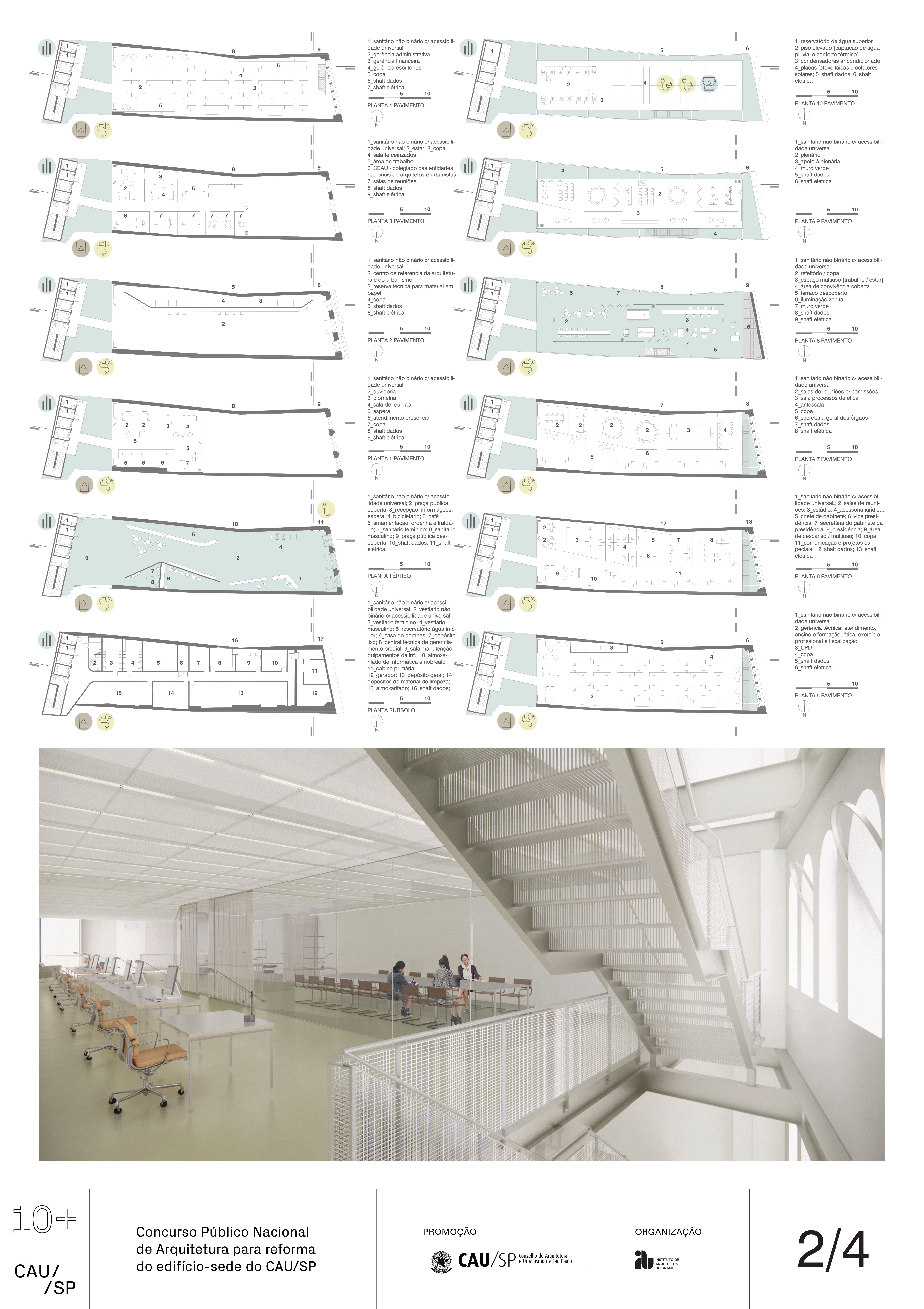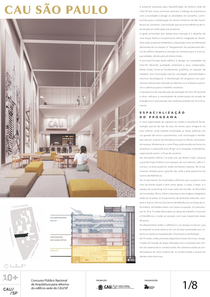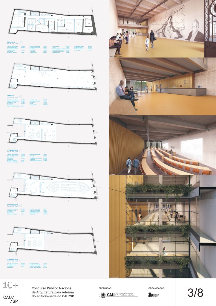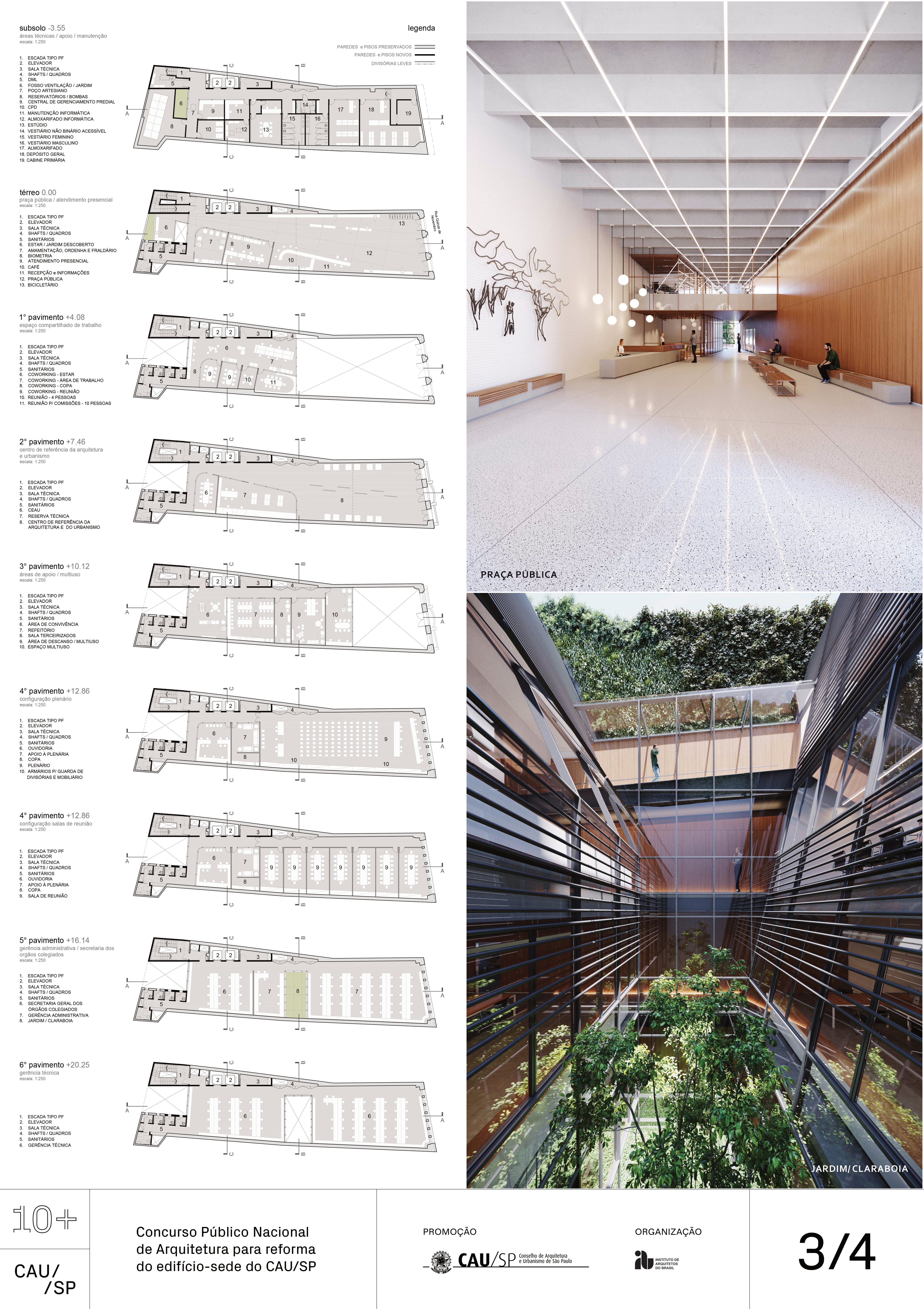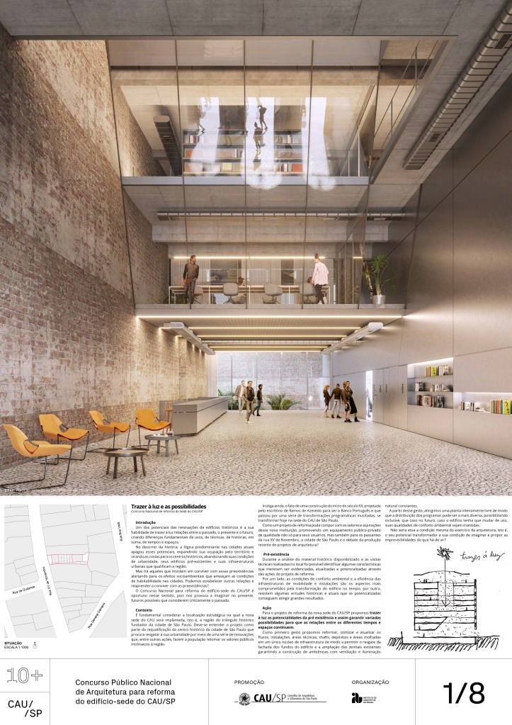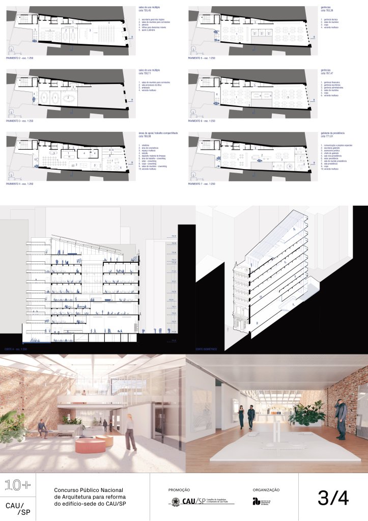 Veja a seguir os premiados, menções e destaques do Concurso Público, em duas etapas, para para a reforma da sede do CAU/SP, no Edifício XV de Novembro, no Triângulo Histórico da cidade de São Paulo.