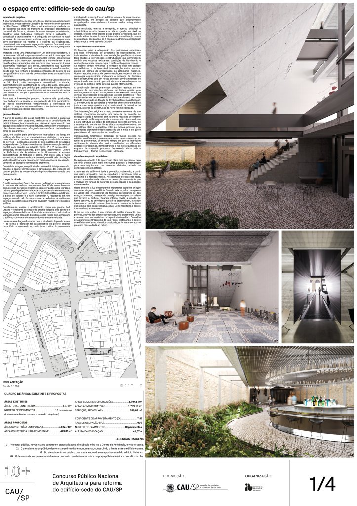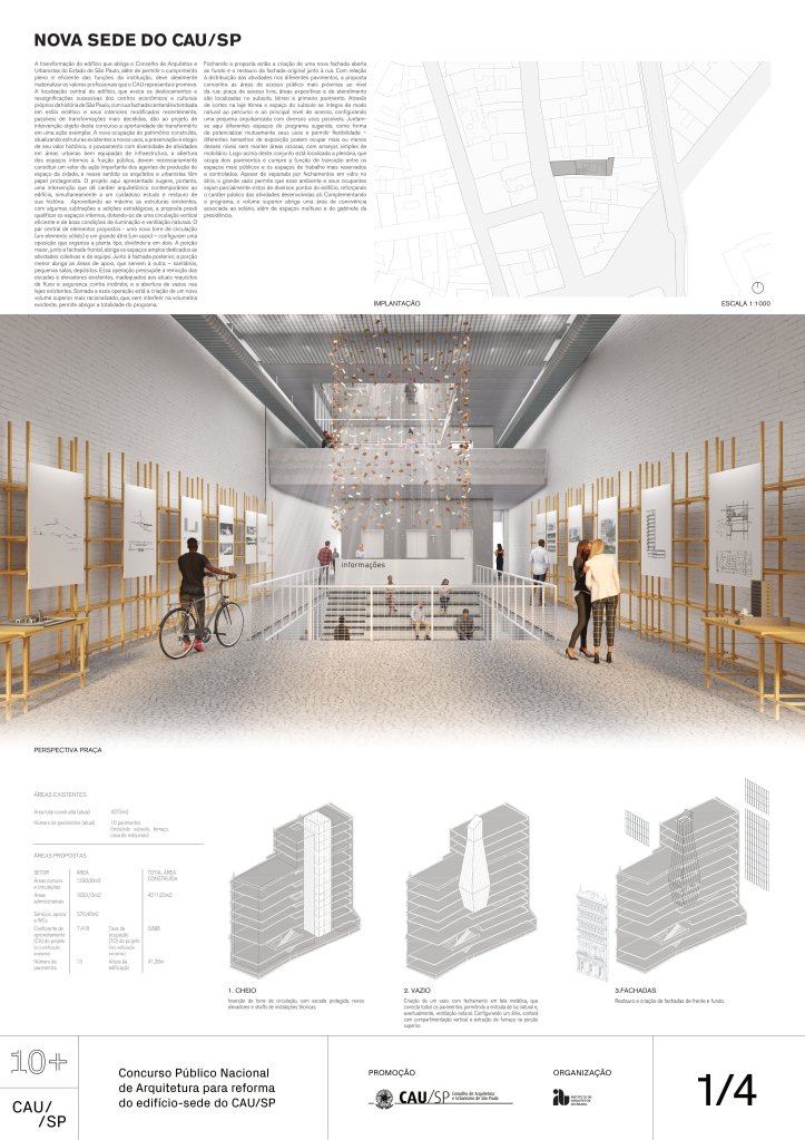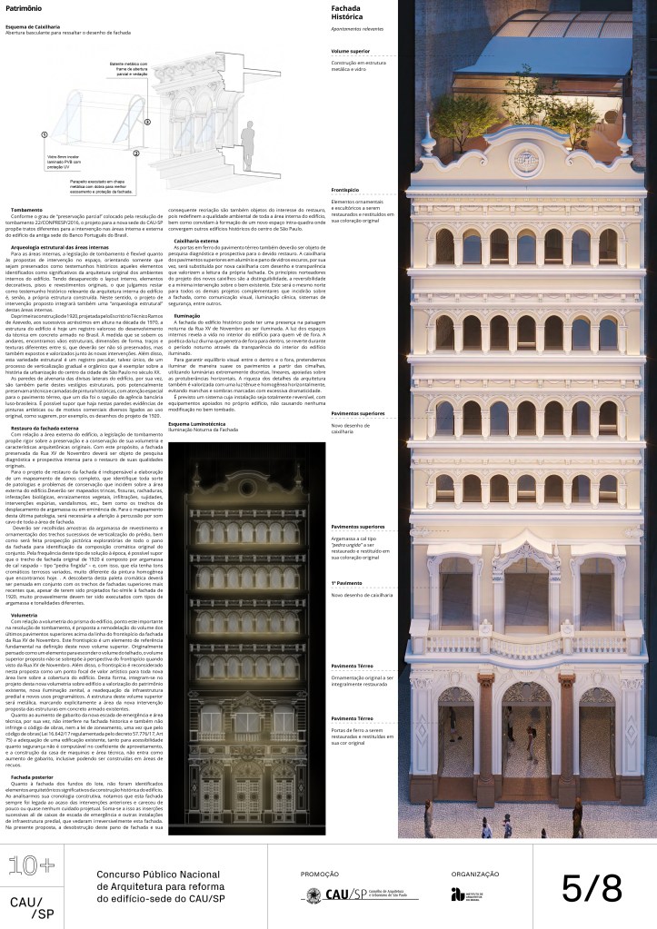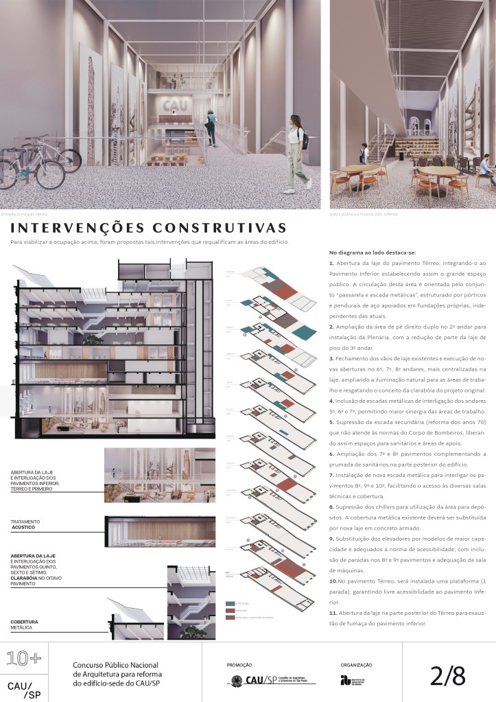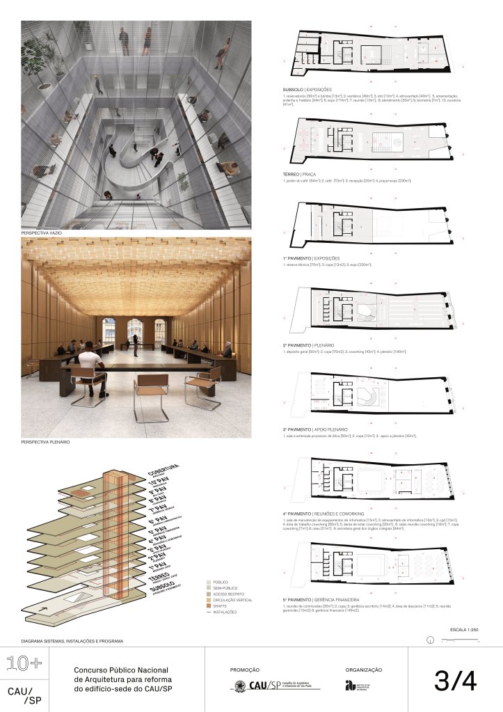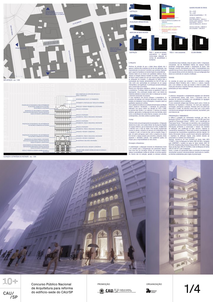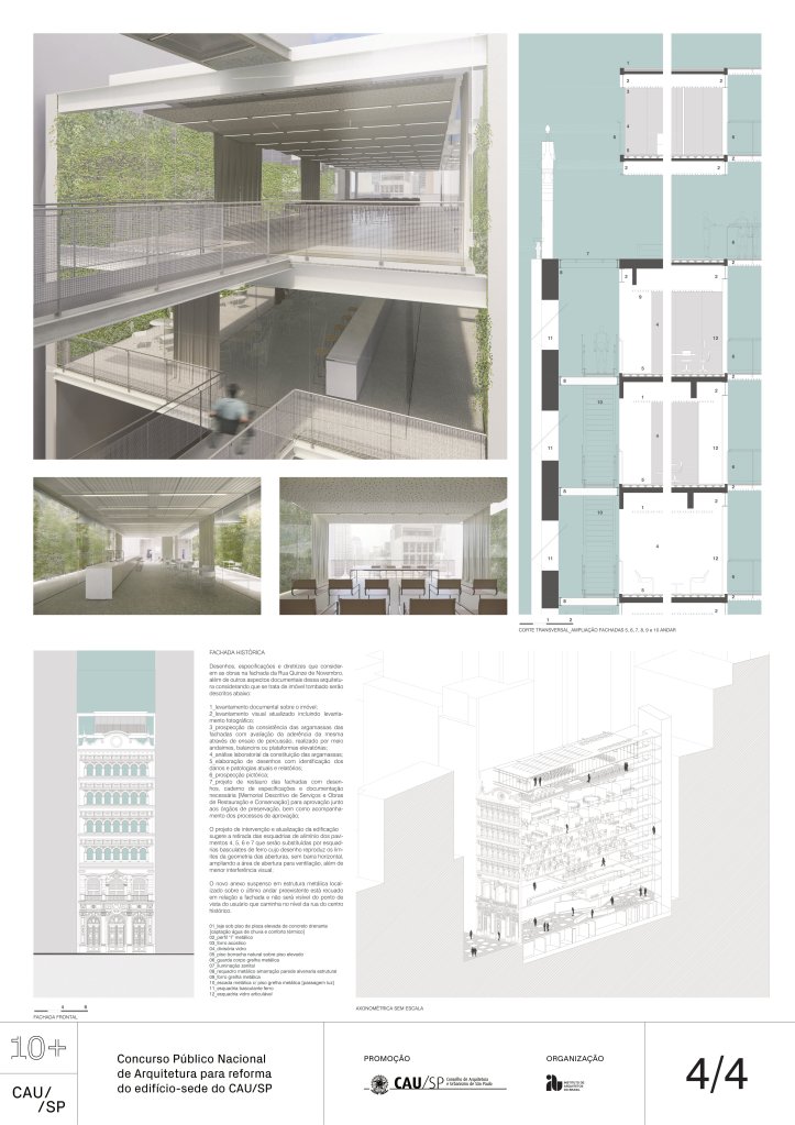 Veja a seguir os premiados, menções e destaques do Concurso Público, em duas etapas, para para a reforma da sede do CAU/SP, no Edifício XV de Novembro, no Triângulo Histórico da cidade de São Paulo.