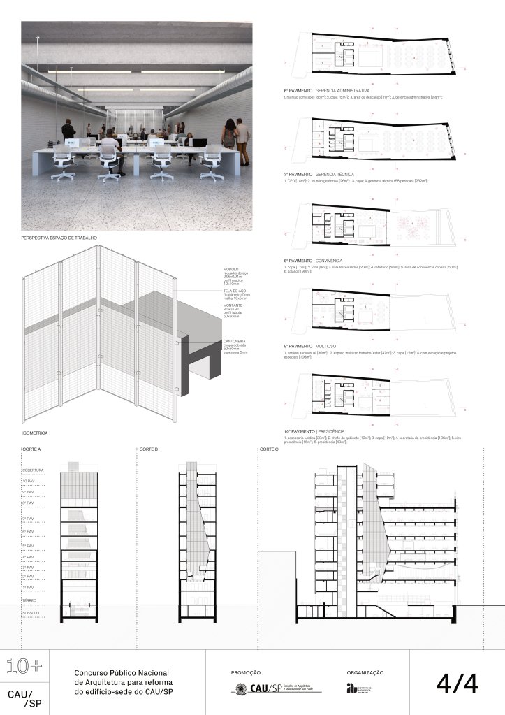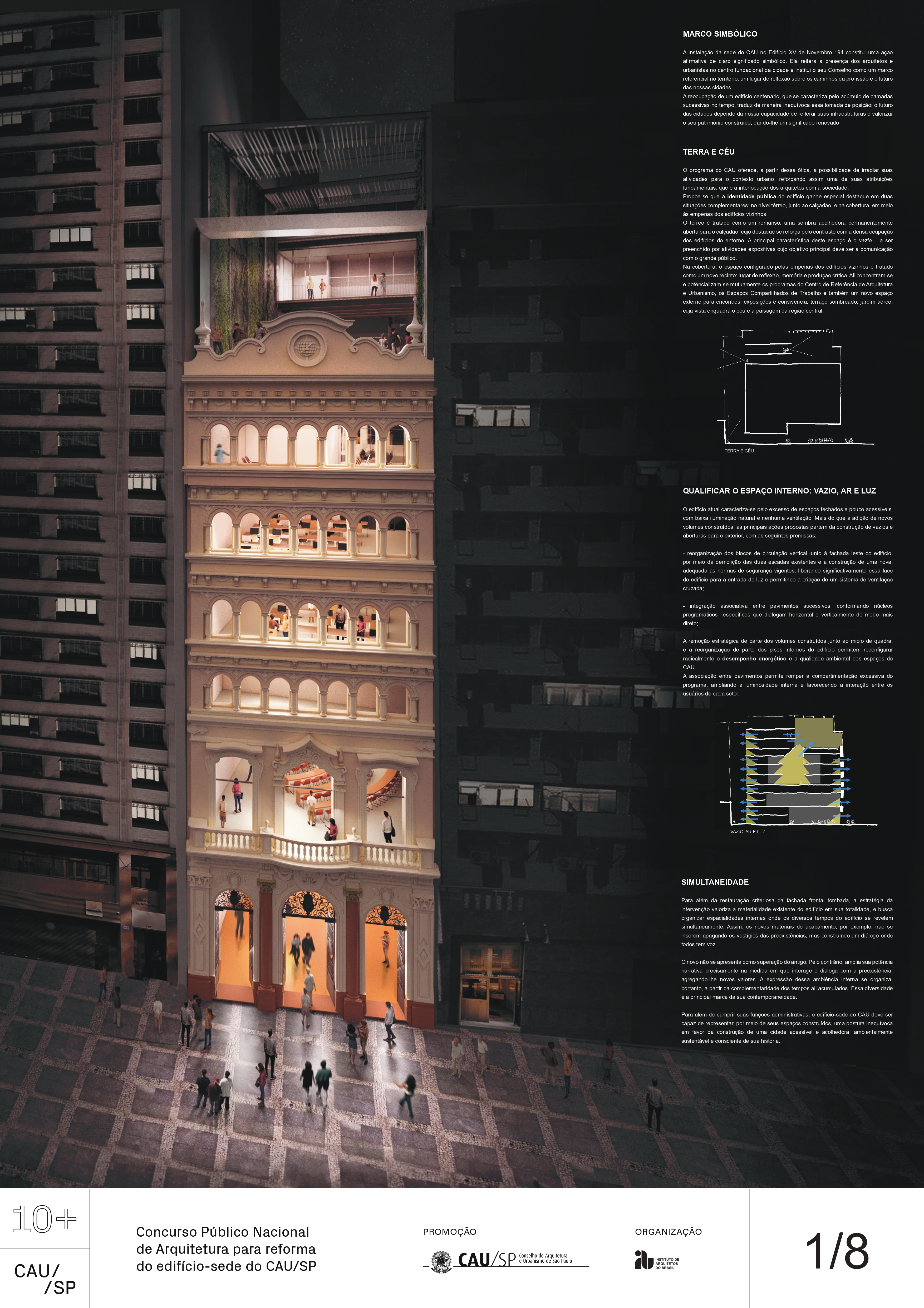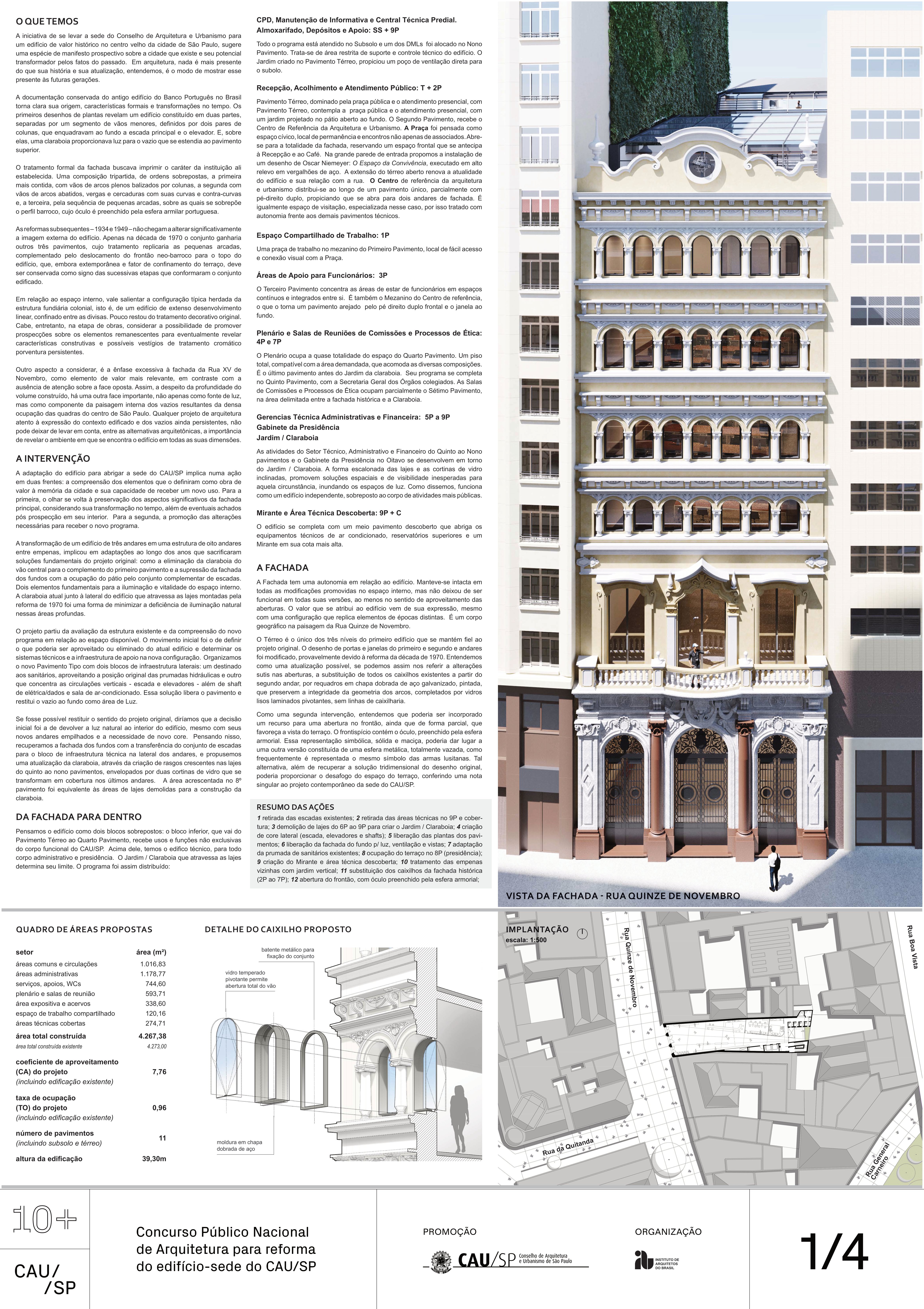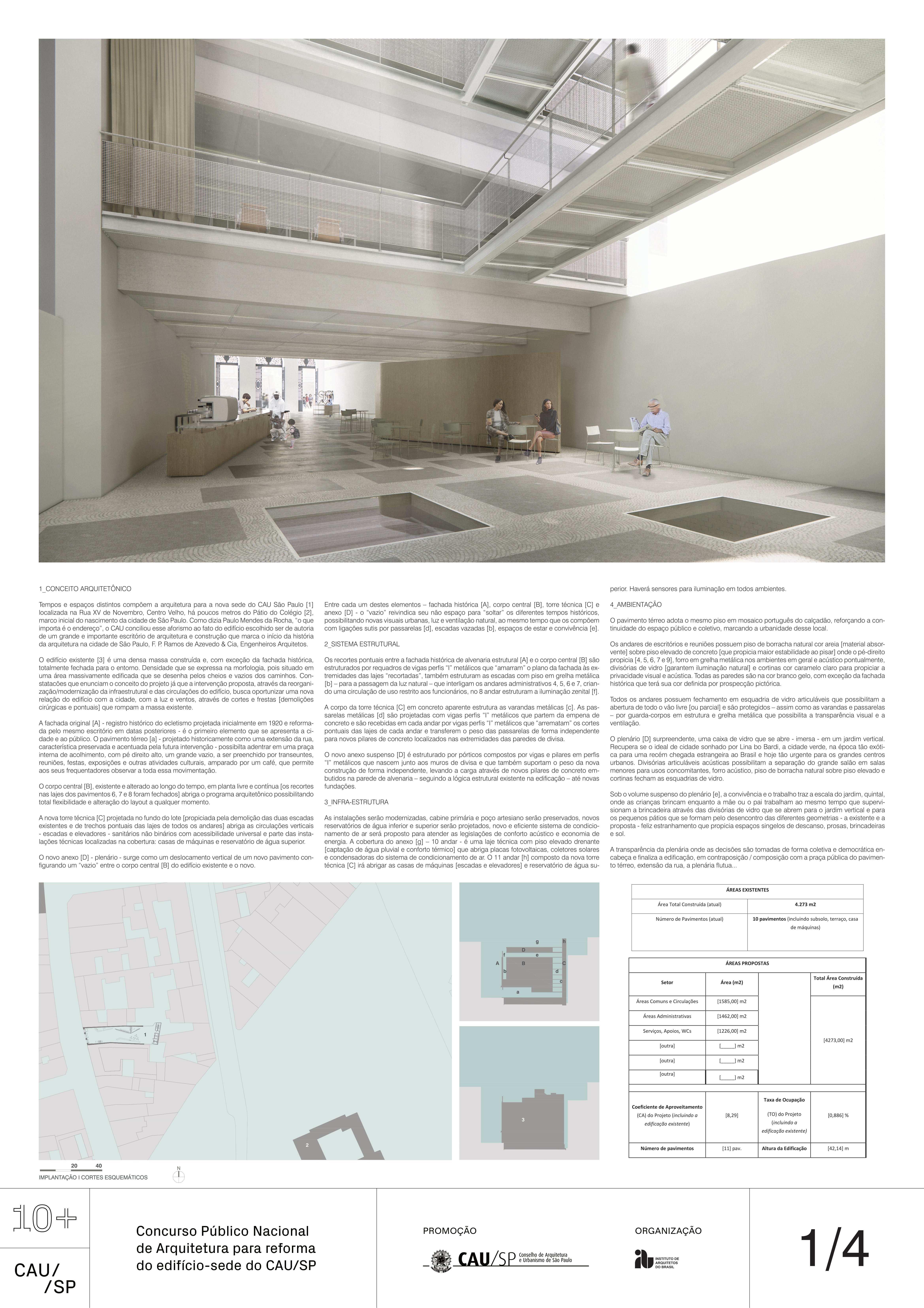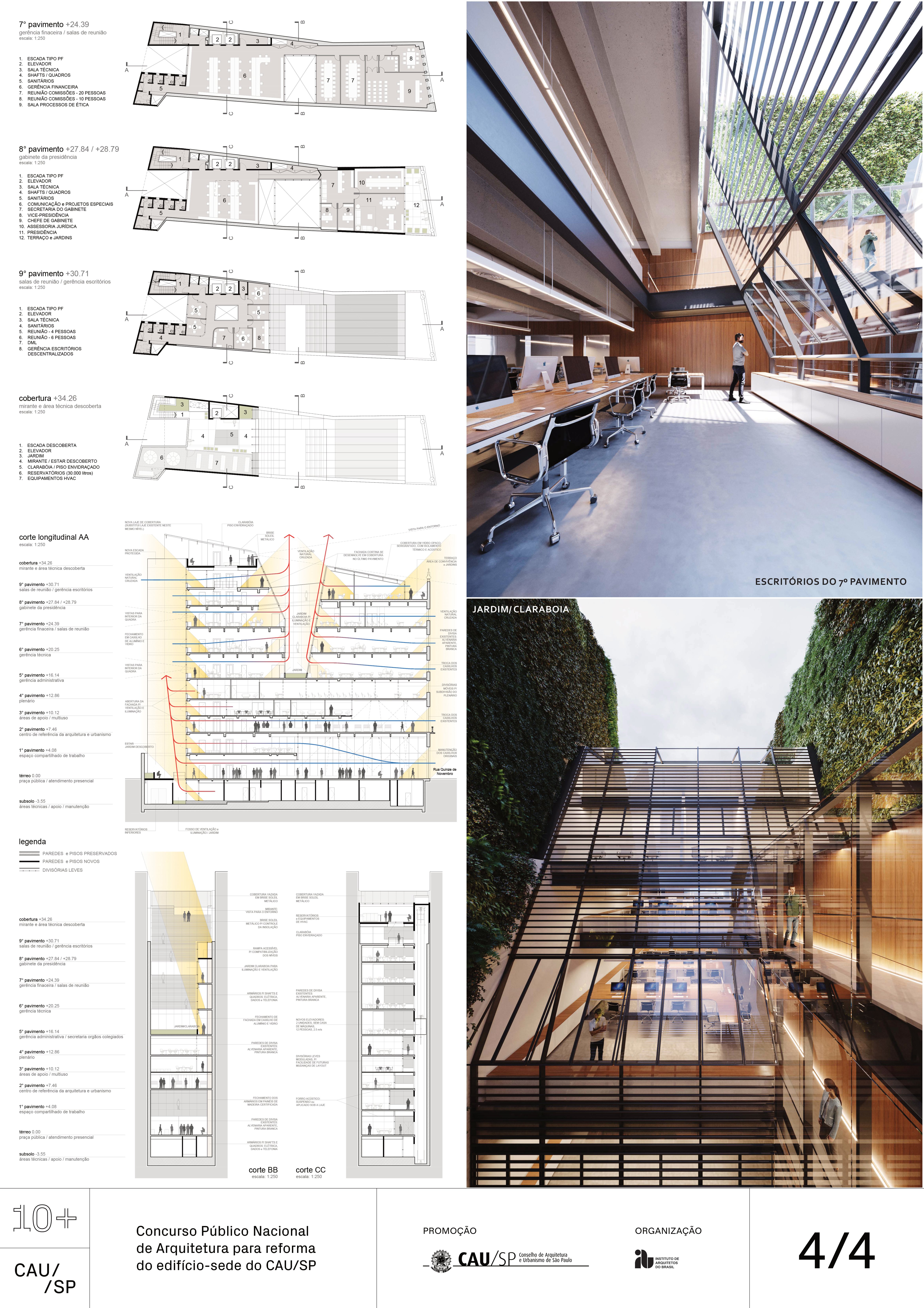 Veja a seguir os premiados, menções e destaques do Concurso Público, em duas etapas, para para a reforma da sede do CAU/SP, no Edifício XV de Novembro, no Triângulo Histórico da cidade de São Paulo.