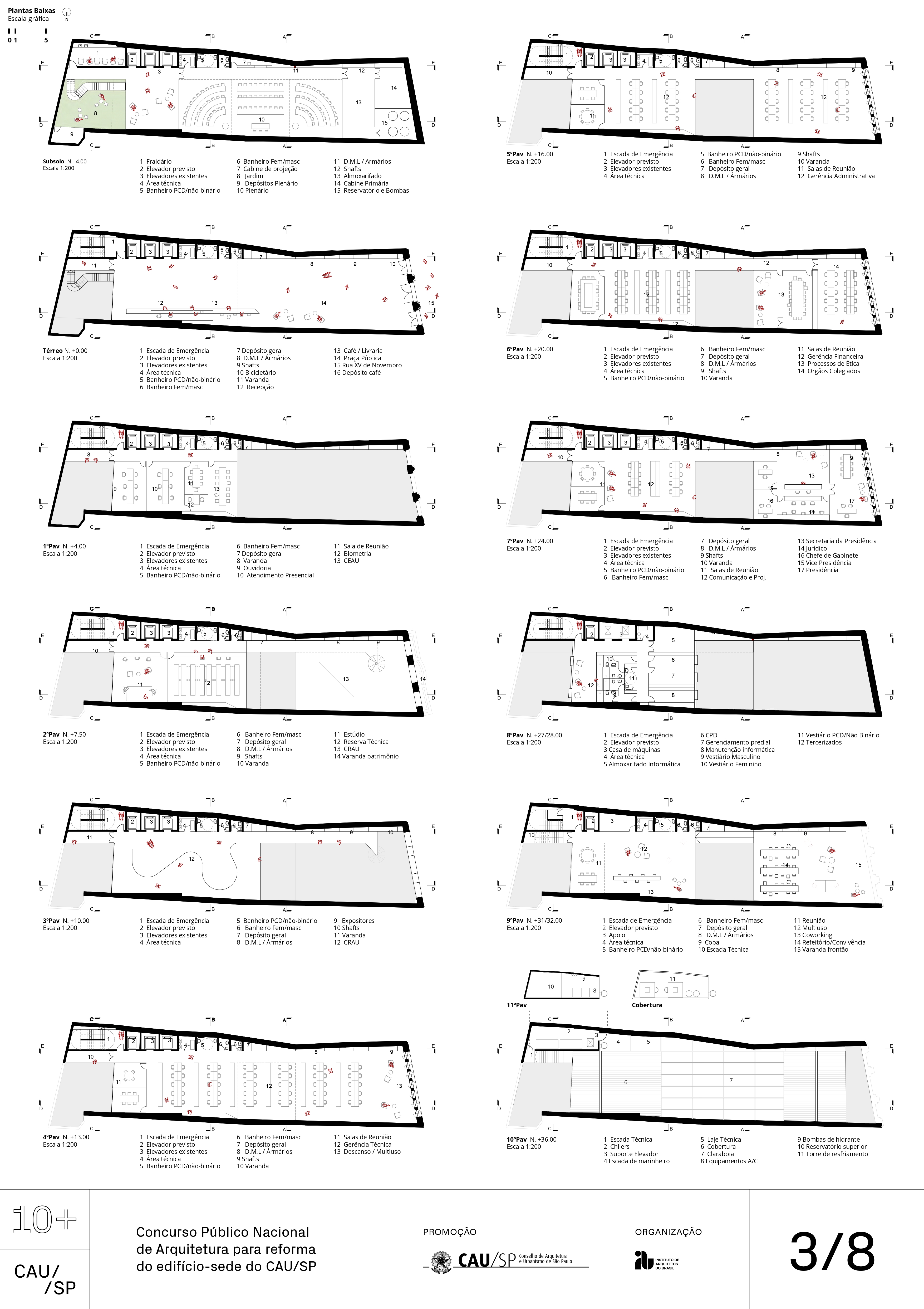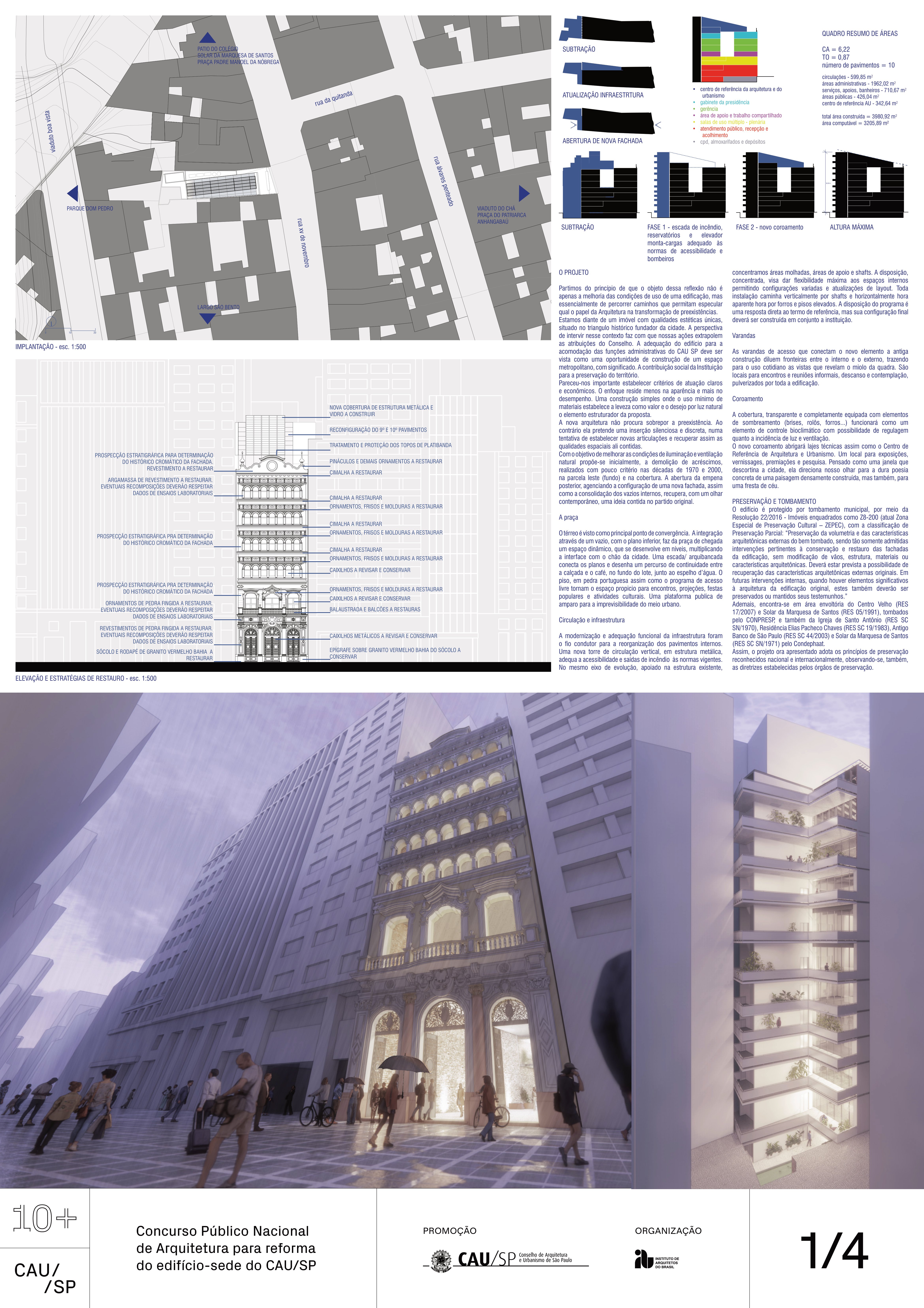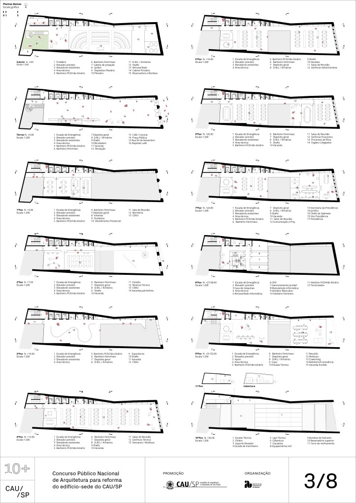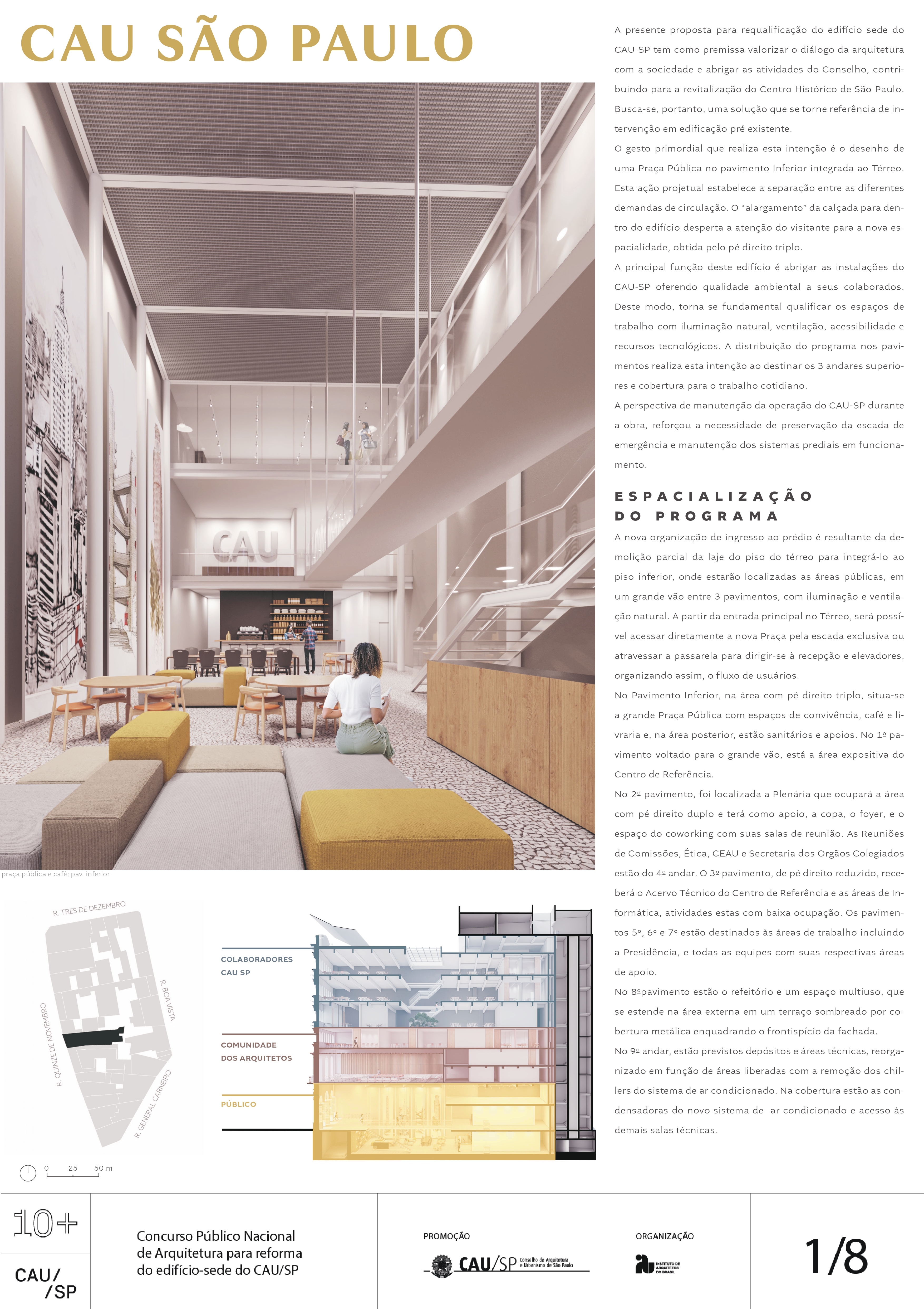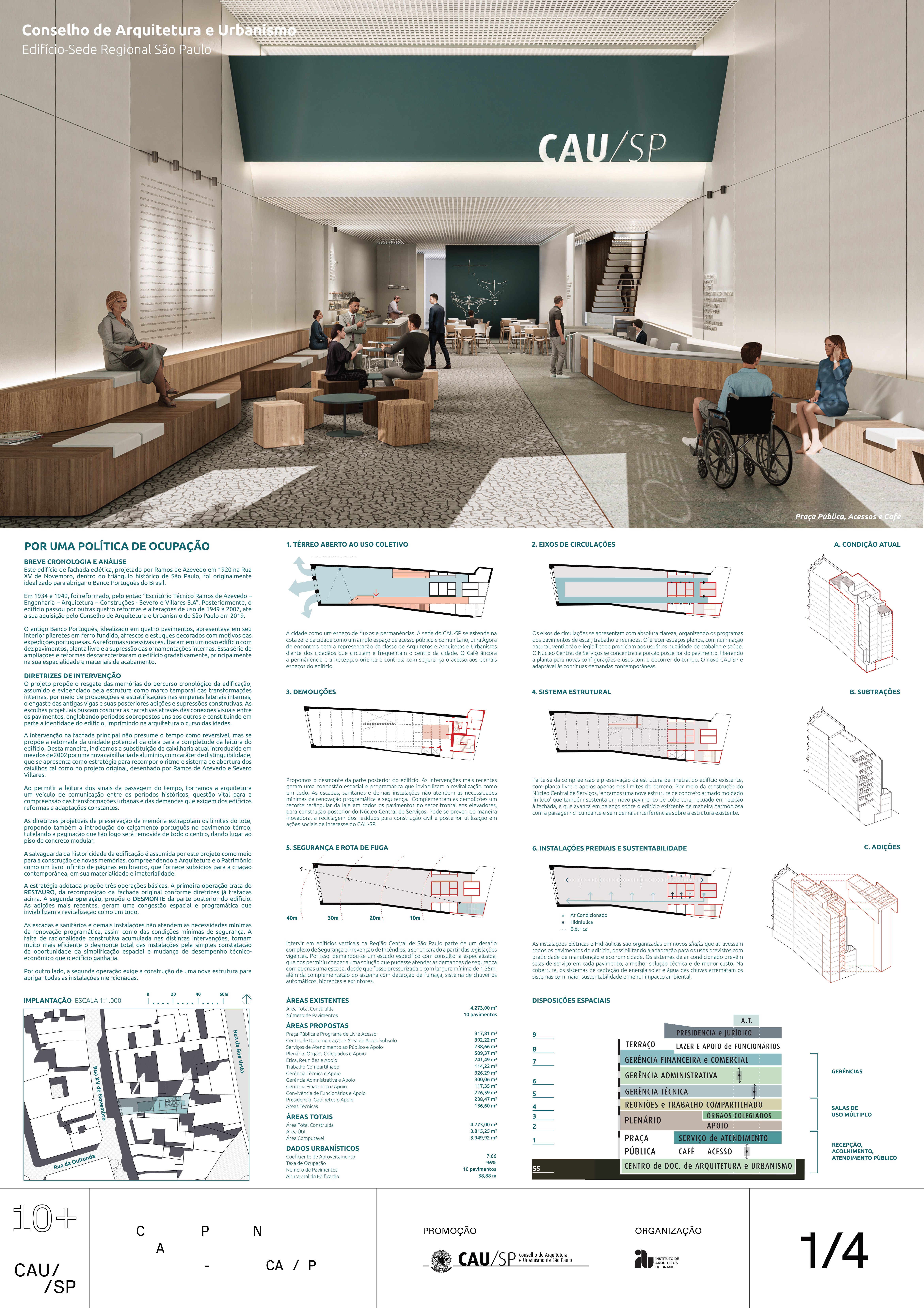 Veja a seguir os premiados, menções e destaques do Concurso Público, em duas etapas, para para a reforma da sede do CAU/SP, no Edifício XV de Novembro, no Triângulo Histórico da cidade de São Paulo.