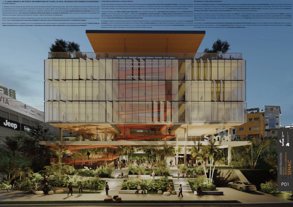 Veja a seguir os projetos premiados e menções do Concurso Público Nacional de Arquitetura para a Escola Técnica e Criativa do SENAC em Salvador – Bahia, realizado em duas etapas. Atas de julgamento: Etapa 1 e Etapa 2.