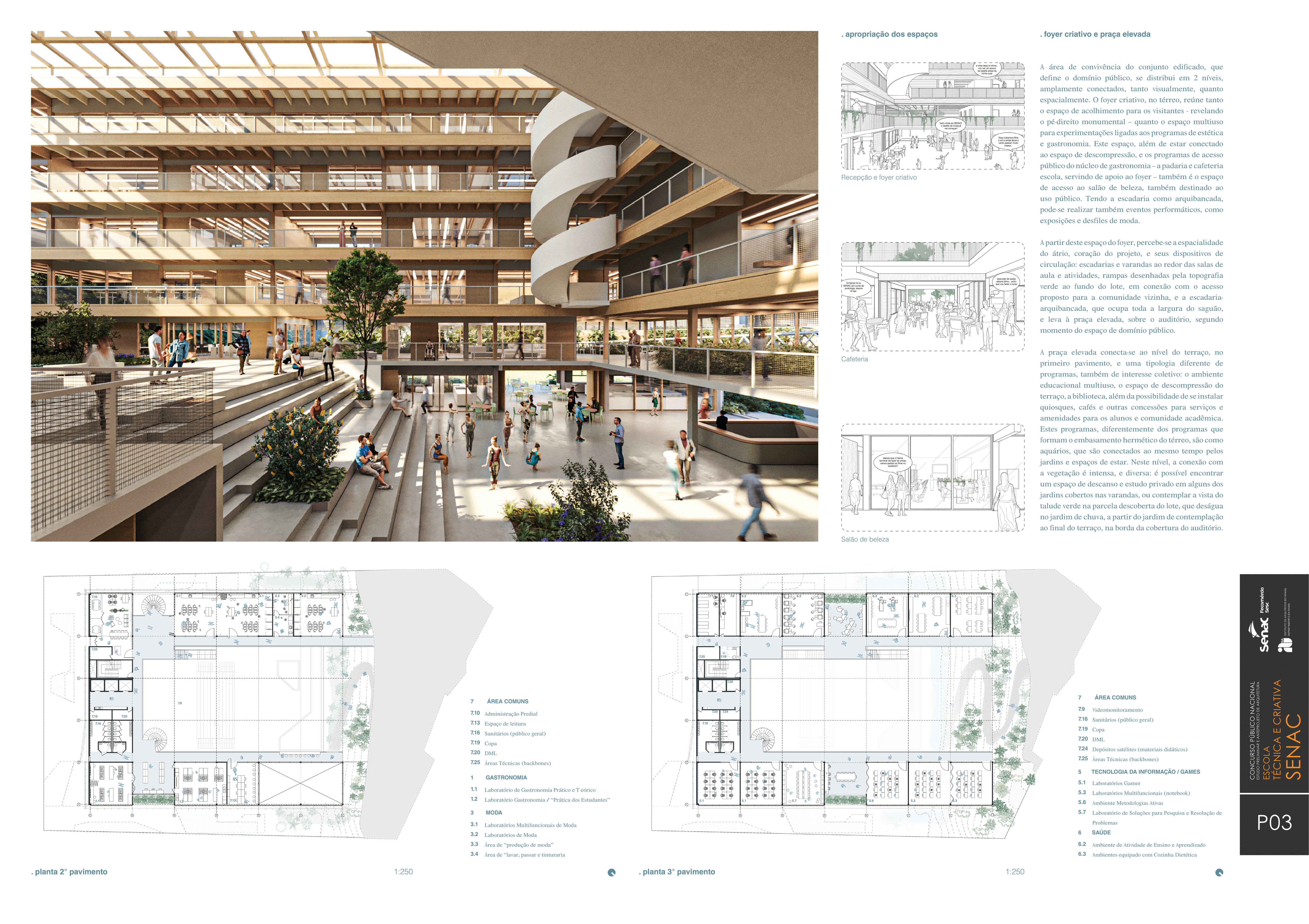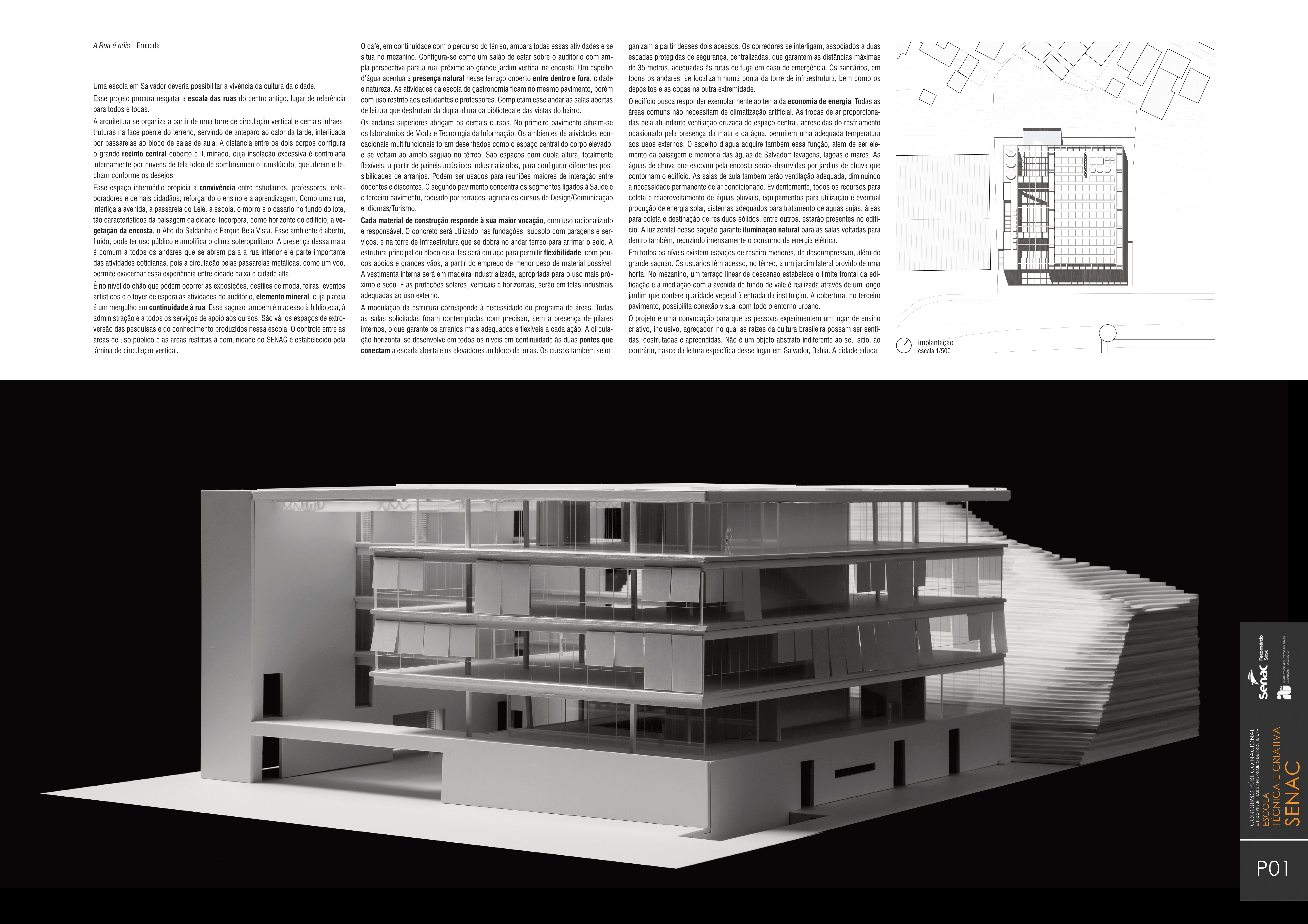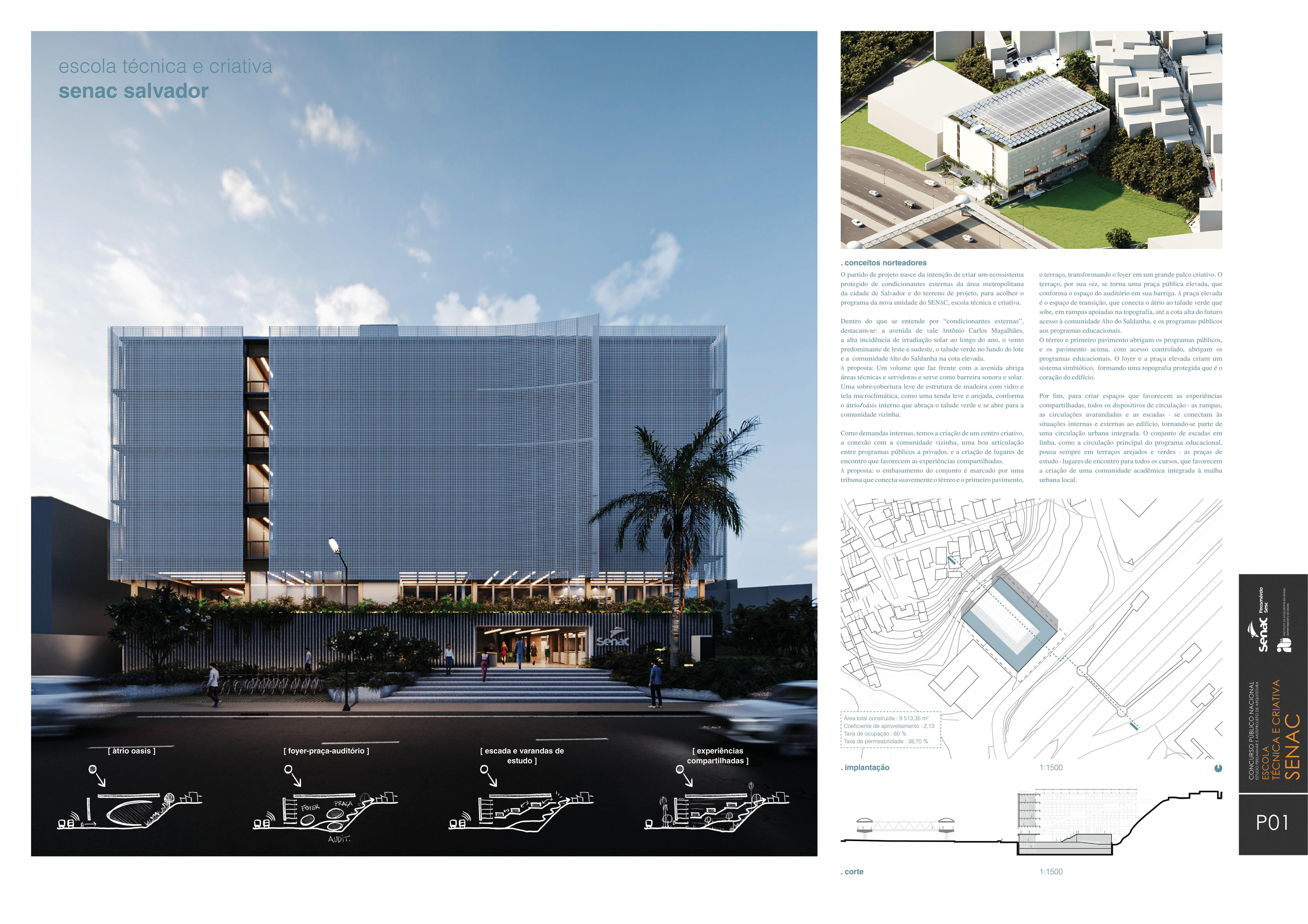 Veja a seguir os projetos premiados e menções do Concurso Público Nacional de Arquitetura para a Escola Técnica e Criativa do SENAC em Salvador – Bahia, realizado em duas etapas. Atas de julgamento: Etapa 1 e Etapa 2.