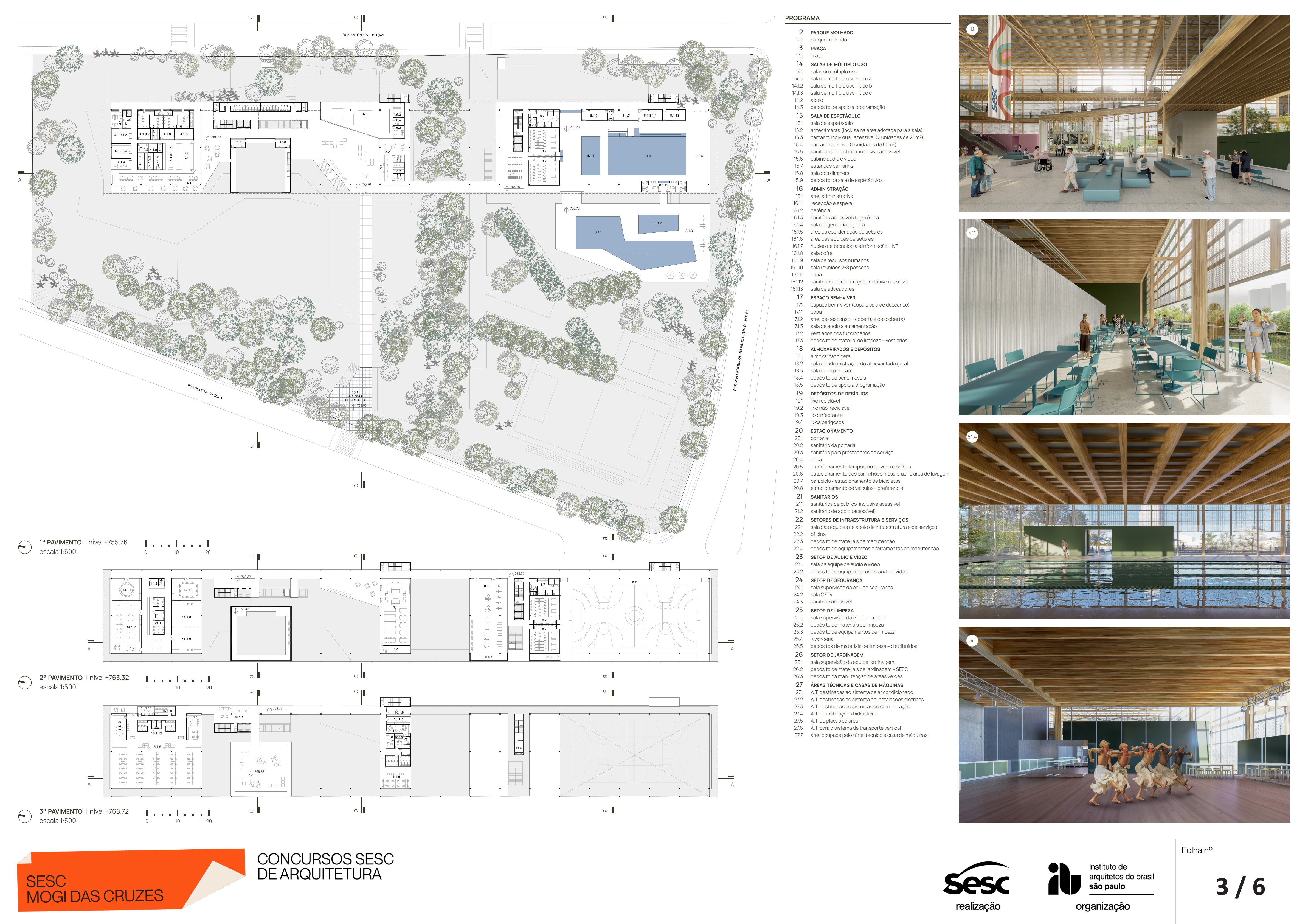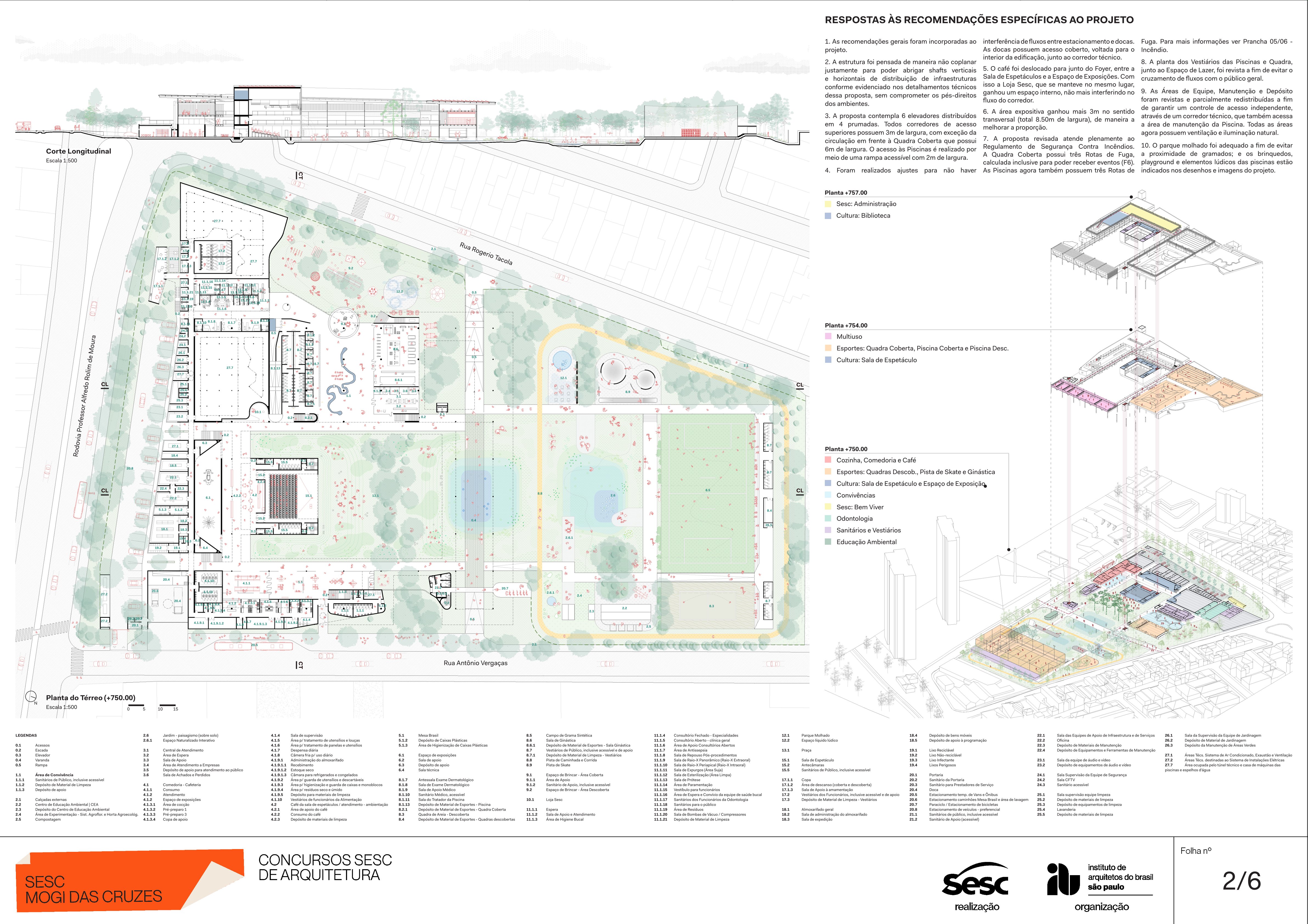 Segundo Lugar – Mira Arquitetos – São Paulo/SP. Autores: Luís Eduardo Loiola de Menezes e Maria Cristina Motta Oliverio. Colaboradores: Camila de Andrade, Giovana Alves Ferreira, Leonardo Loyola, Tamy Pesinato, Tiago Beithum Galdeano. Consultores: Eduardo Vianna, Igor Alves – instalações – HVAC. Filipe Vaccas – instalações – elétrica. Rafael Paolucci – instalações – elétrica. Patrícia Nozu – instalações – sistemas eletrônicos. Pedro Fattor – instalações hidráulicas combate incêndio. Sammy Lima – instalações – elétrica. Ricardo Bozza – estrutura. J.C Serroni – teatro e cenografia.