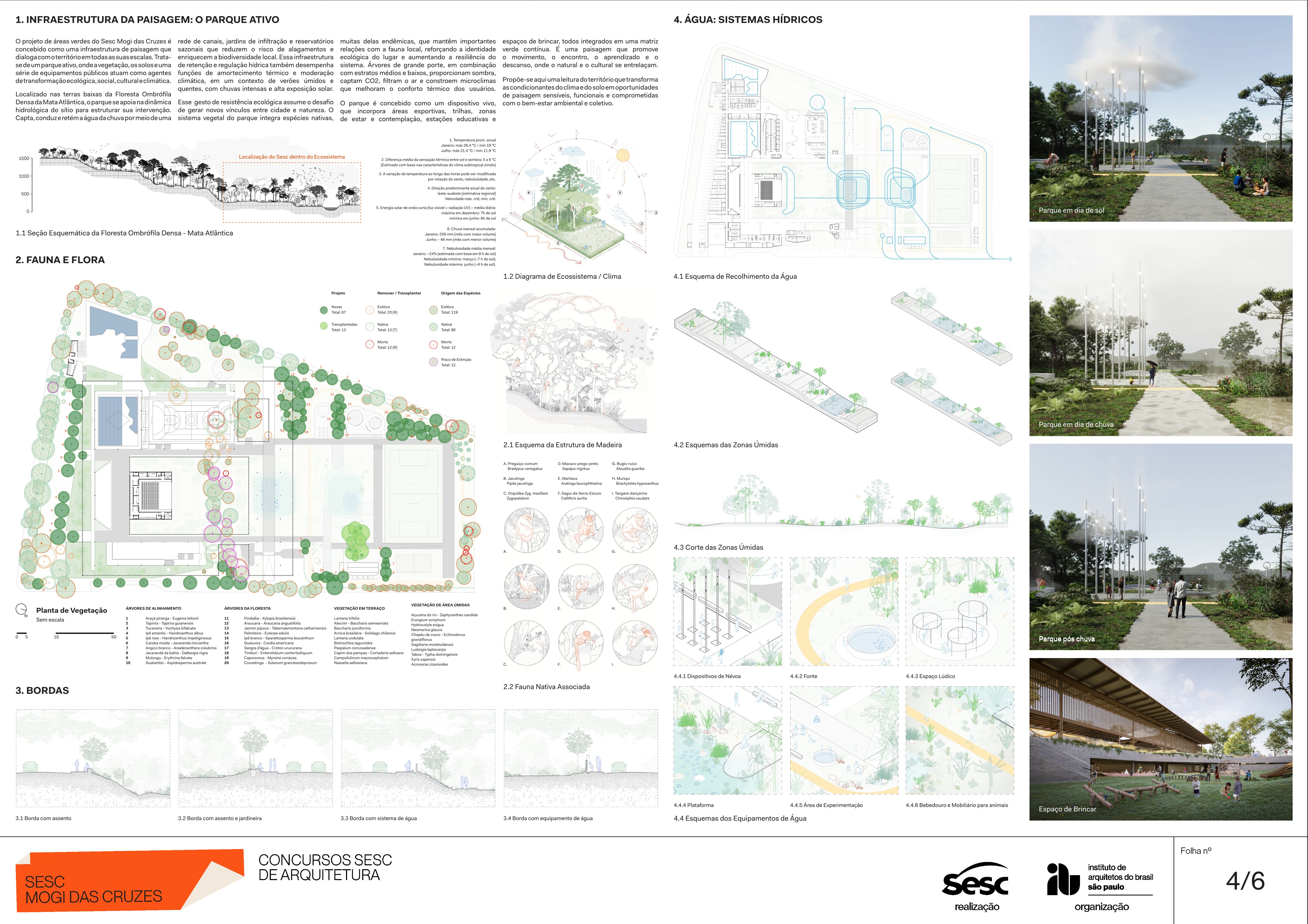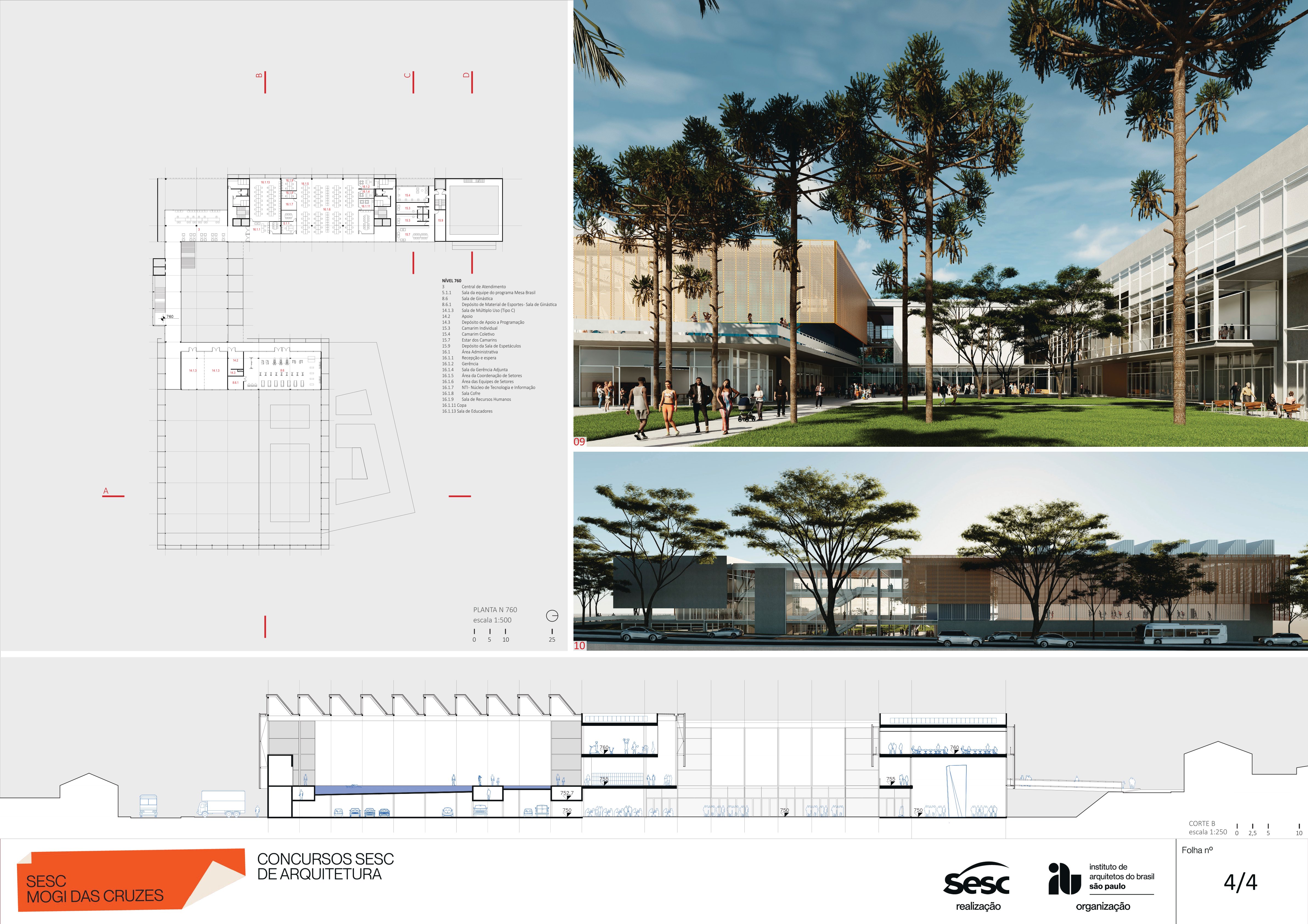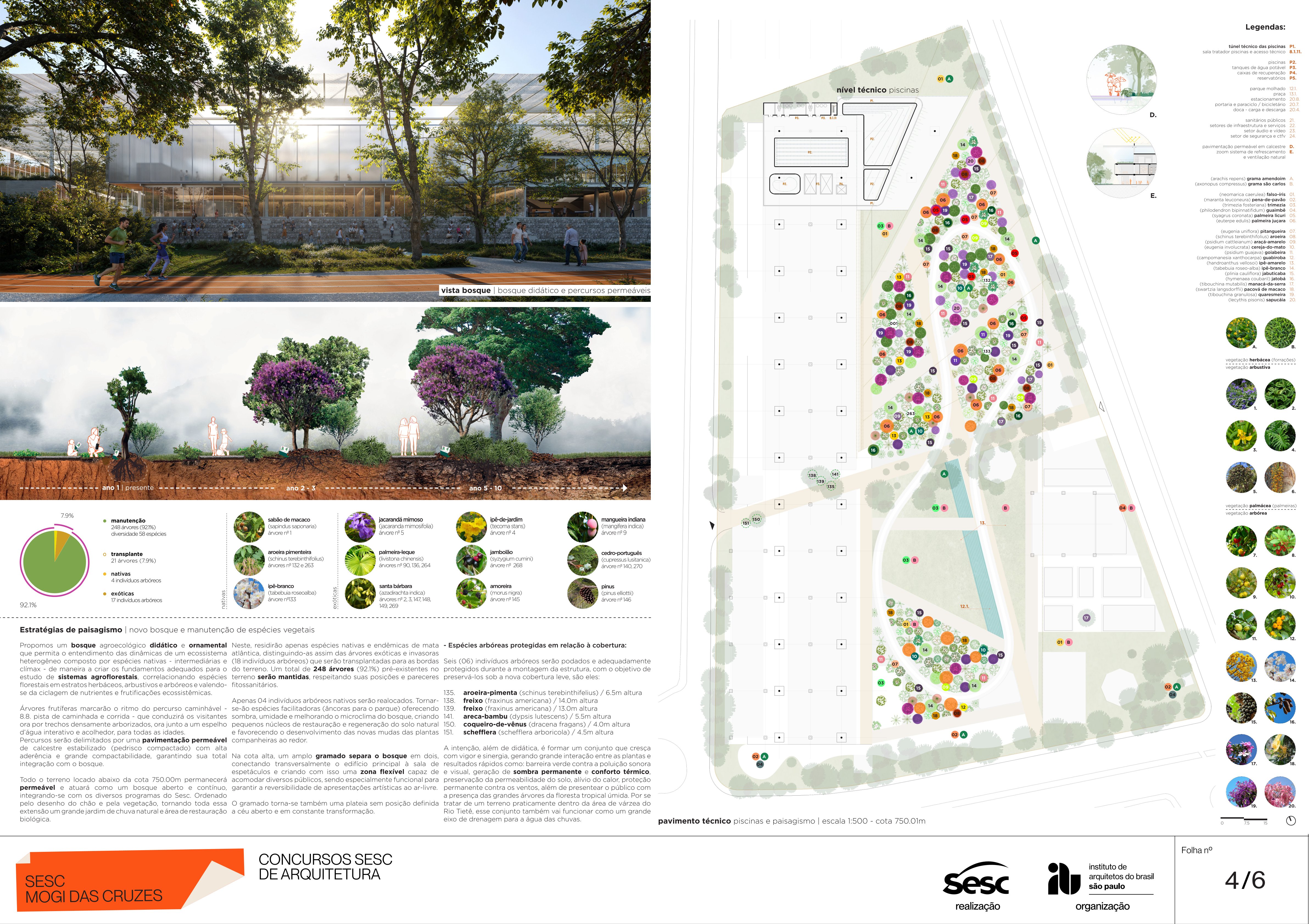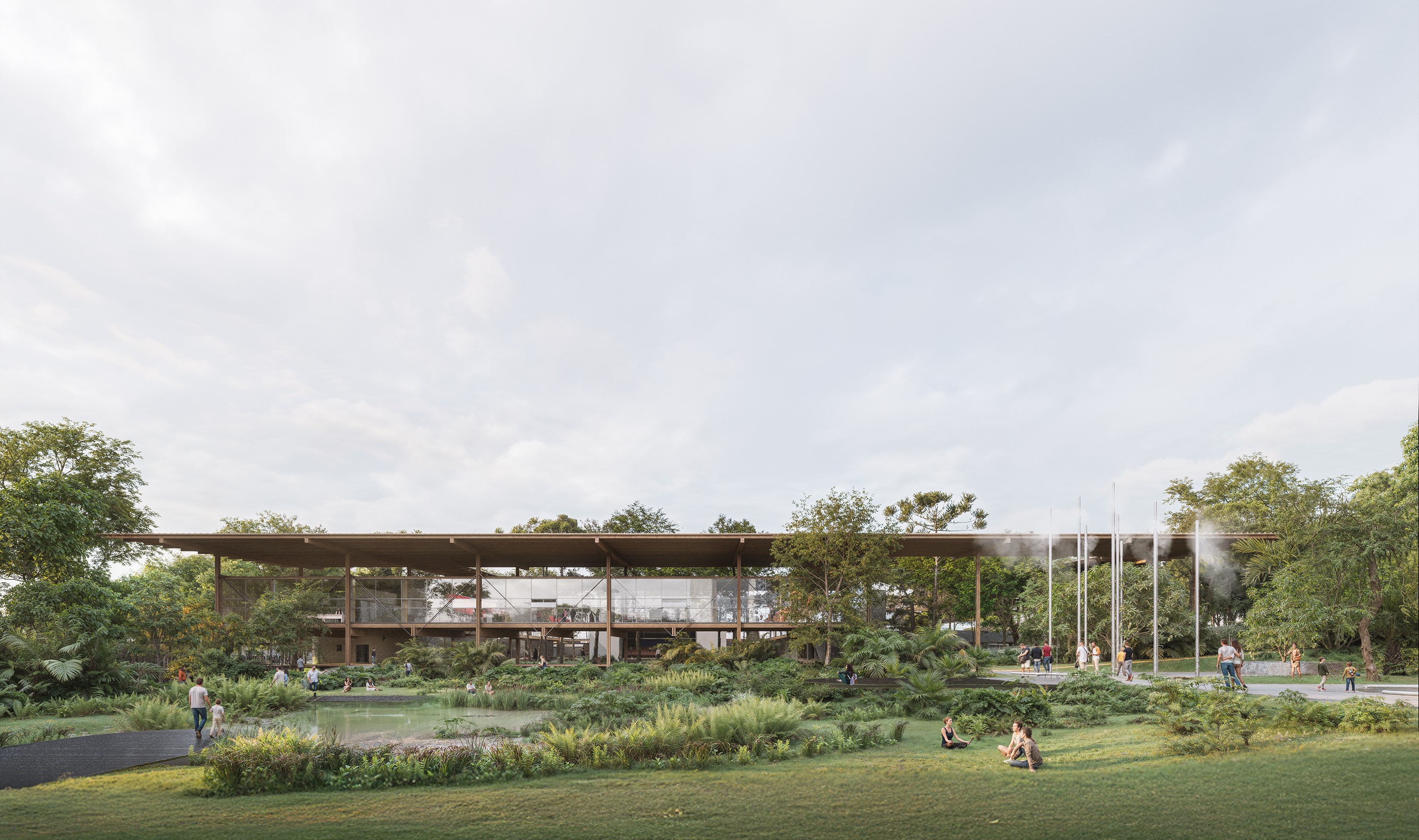 Quarto Lugar – Democratic Architects – São Paulo/SP. Autores: Antonio Roberto Zanolla, Andre Enrico Cassettari Zanolla. Colaboradores: Bianca de Lira Silva, Gabriel Melo Zambroni, Julia Marquez de Souza, Ricardo Hiroyuki Achidate Makino, Thomas Dylan Butler. Consultores: Eduardo Martins Ferreira (Pura Arquitetura) – Consultor de Projetos Institucionais. Jorge Rybka (EngeBrat – Consultoria, Engenharia e Projetos) – Consultor de Estrutura Metálicas. Viviane Almeida Campos (Pqr Ma2 Engenharia) – Consultor de Sistemas Elétricos, Hidráulicos e de Proteção e Combate à Incêndio. Ricardo Vianna (Bonsai Paisagismo) – Consultor de Paisagismo e Agronomia. Francisco Spadoni – Consultor de Projetos Institucionais. Mayra Simone dos Santos – Consultor de Projetos Institucionais. Gustavo Emanoel da Silva (Simultaneo Studio) – Consultor de Arte e Renderização. Gabriel Cunha (Simultaneo Studio) – Consultor de Arte e Renderização. Julia Moran (Simultaneo Studio) – Consultor de Arte e Renderização. Leonardo Regis (Simultaneo Studio) – Consultor de Arte e Renderização. João Paulo Prado – Consultor de Fotografia. Inaê Moraes Teixeira – Consultor de Modelmaking.