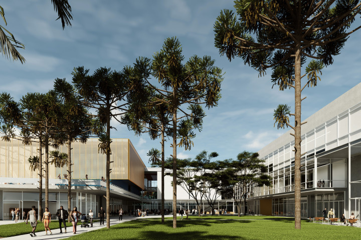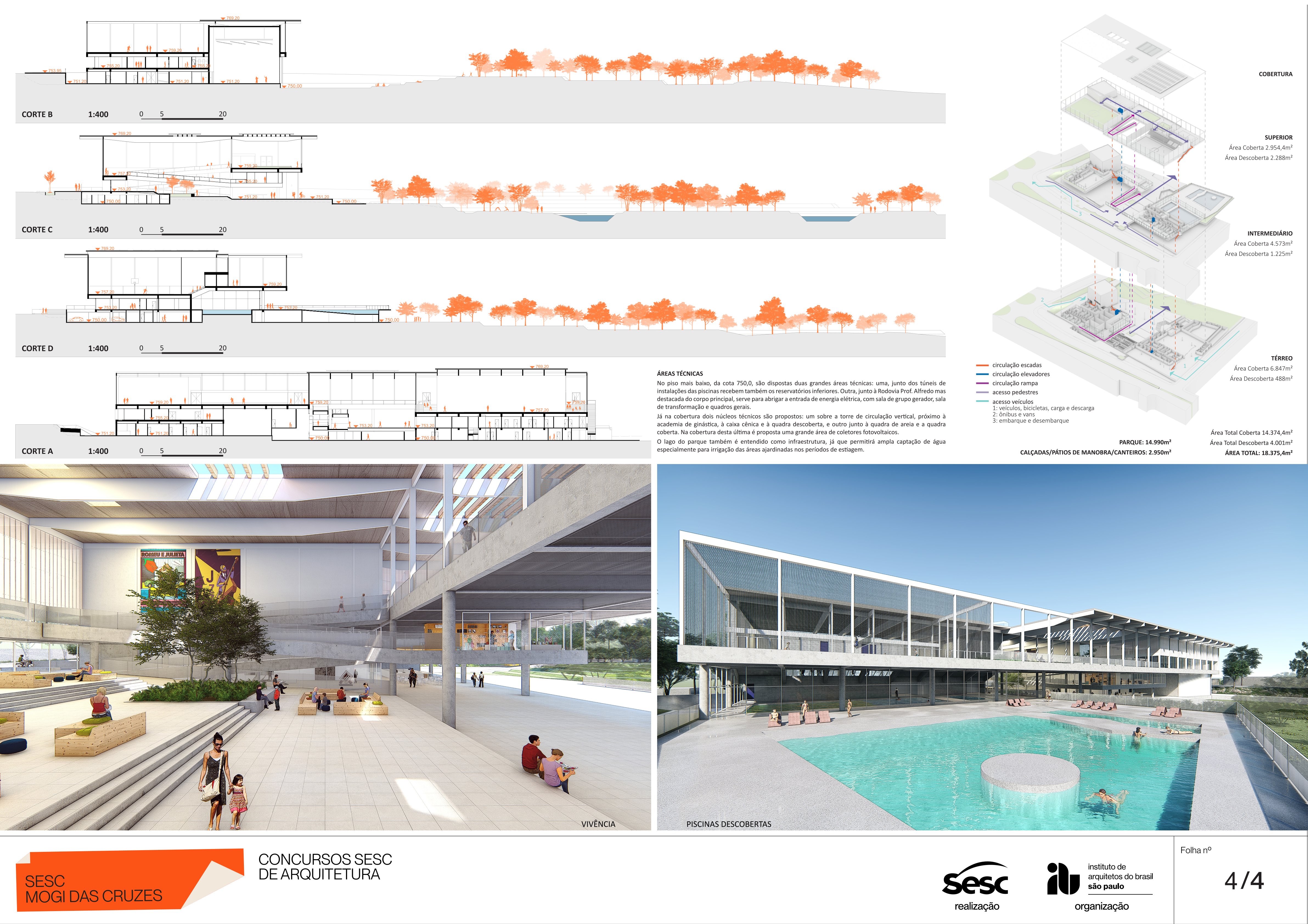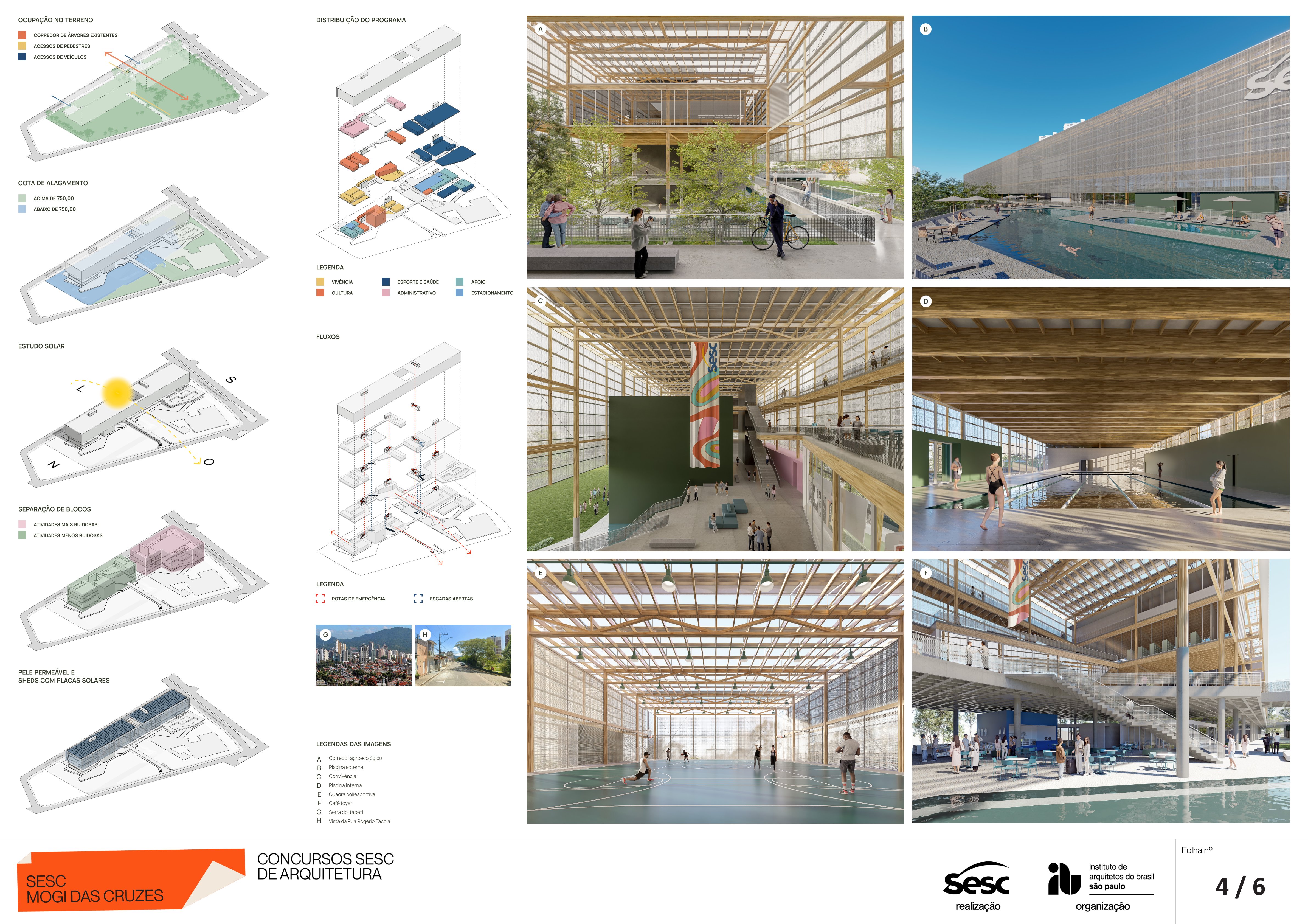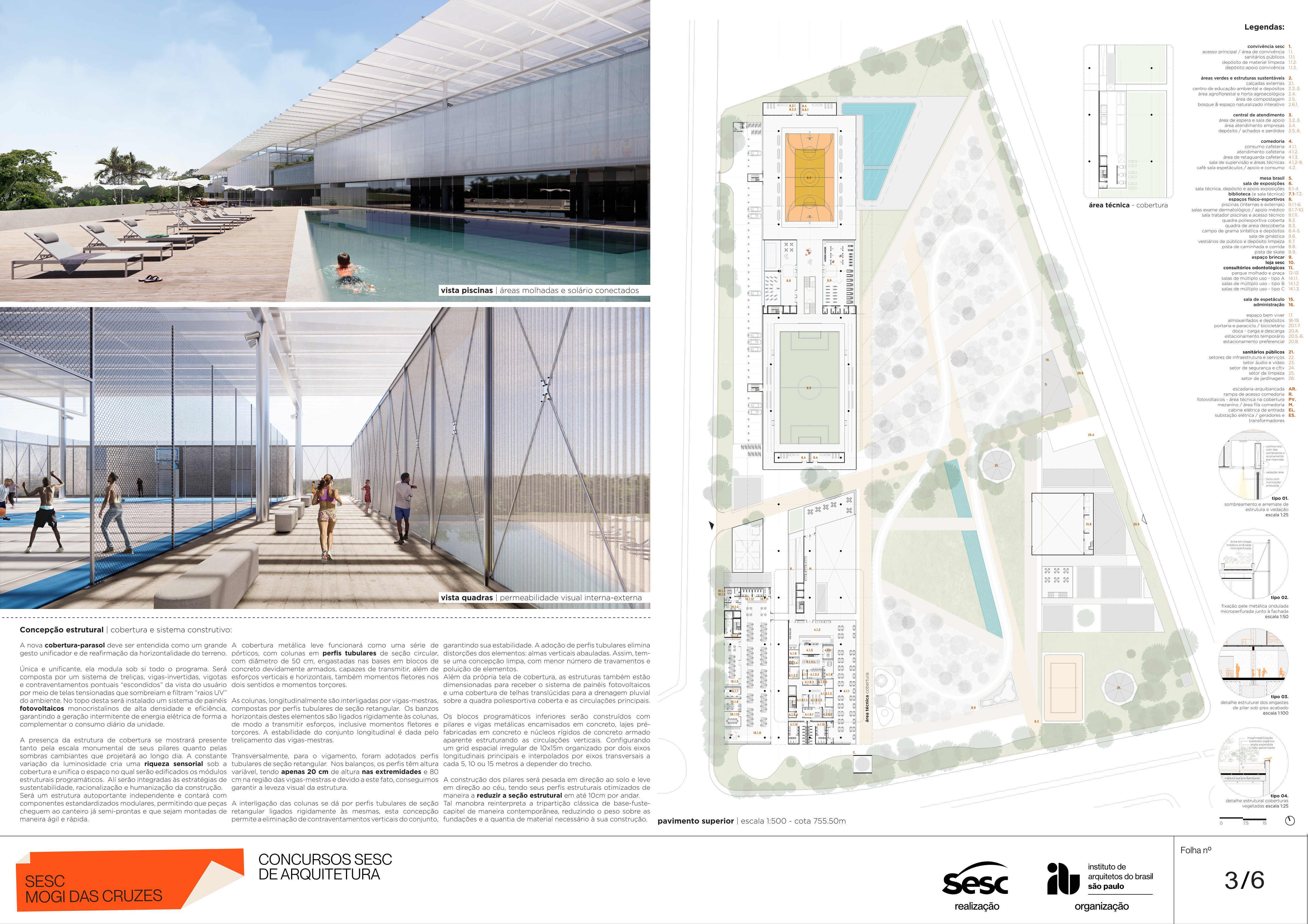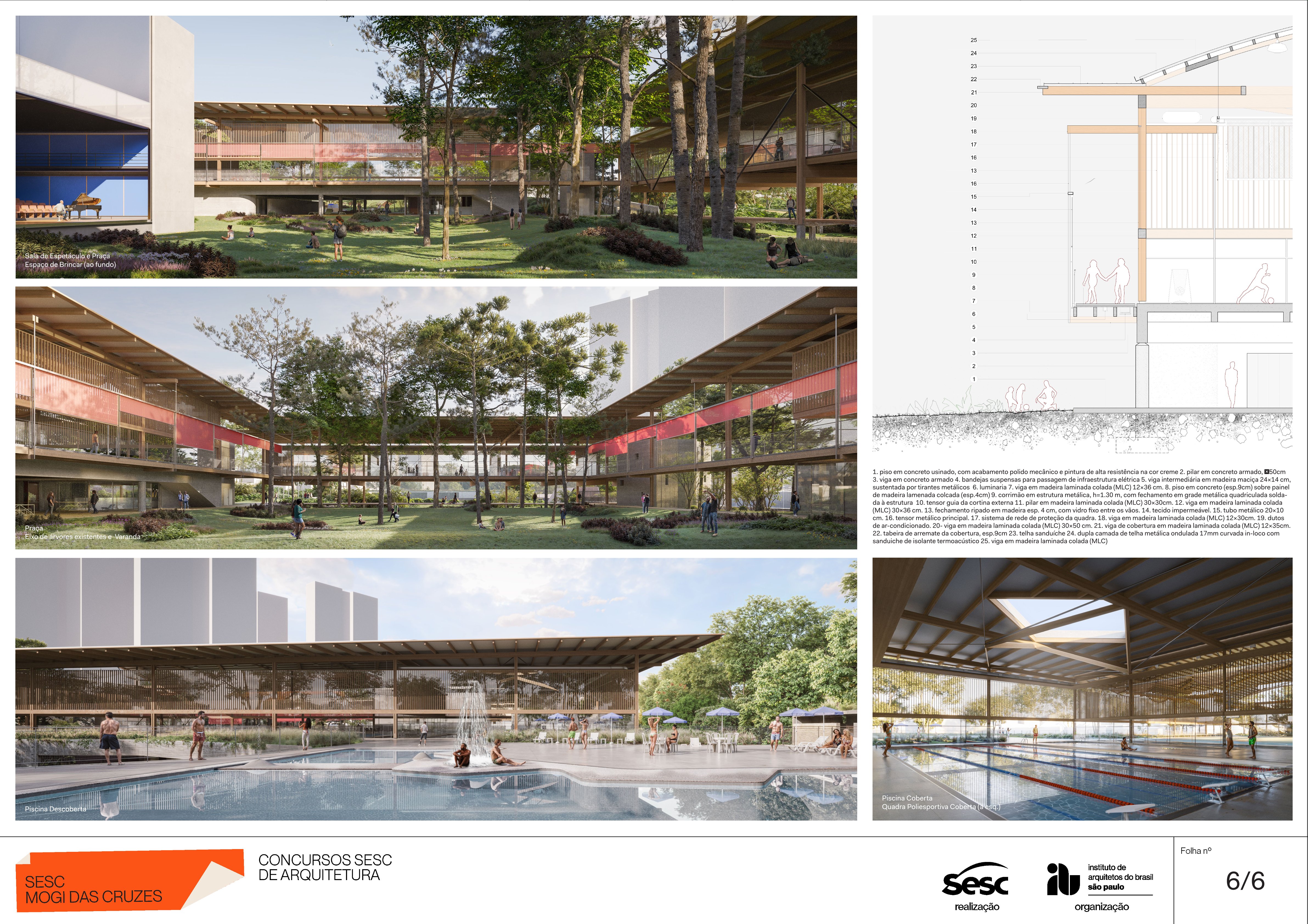 Quarto Lugar – Democratic Architects – São Paulo/SP. Autores: Antonio Roberto Zanolla, Andre Enrico Cassettari Zanolla. Colaboradores: Bianca de Lira Silva, Gabriel Melo Zambroni, Julia Marquez de Souza, Ricardo Hiroyuki Achidate Makino, Thomas Dylan Butler. Consultores: Eduardo Martins Ferreira (Pura Arquitetura) – Consultor de Projetos Institucionais. Jorge Rybka (EngeBrat – Consultoria, Engenharia e Projetos) – Consultor de Estrutura Metálicas. Viviane Almeida Campos (Pqr Ma2 Engenharia) – Consultor de Sistemas Elétricos, Hidráulicos e de Proteção e Combate à Incêndio. Ricardo Vianna (Bonsai Paisagismo) – Consultor de Paisagismo e Agronomia. Francisco Spadoni – Consultor de Projetos Institucionais. Mayra Simone dos Santos – Consultor de Projetos Institucionais. Gustavo Emanoel da Silva (Simultaneo Studio) – Consultor de Arte e Renderização. Gabriel Cunha (Simultaneo Studio) – Consultor de Arte e Renderização. Julia Moran (Simultaneo Studio) – Consultor de Arte e Renderização. Leonardo Regis (Simultaneo Studio) – Consultor de Arte e Renderização. João Paulo Prado – Consultor de Fotografia. Inaê Moraes Teixeira – Consultor de Modelmaking.
