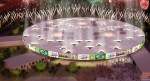 Na essência, Arena é um local de convergência do olhar e de concentração de pessoas. O espaço proposto é coberto, estabelecendo amplo abrigo aos frequentadores. Esta cobertura apresenta-se de forma circular, como um disco que paira sobre o terreno e edifícios. Este disco é composto pela mesma lógica estrutural presente na tradicional bola de futebol – a forma hexagonal de sua costura. Seu anel, formado por hexágonos de leds são controlados por computador, fazendo com que este envelope DIGITAL se apresente como o elo comunicador do evento, um “placar eletrônico” que interage com a população da região e comanda a festa.